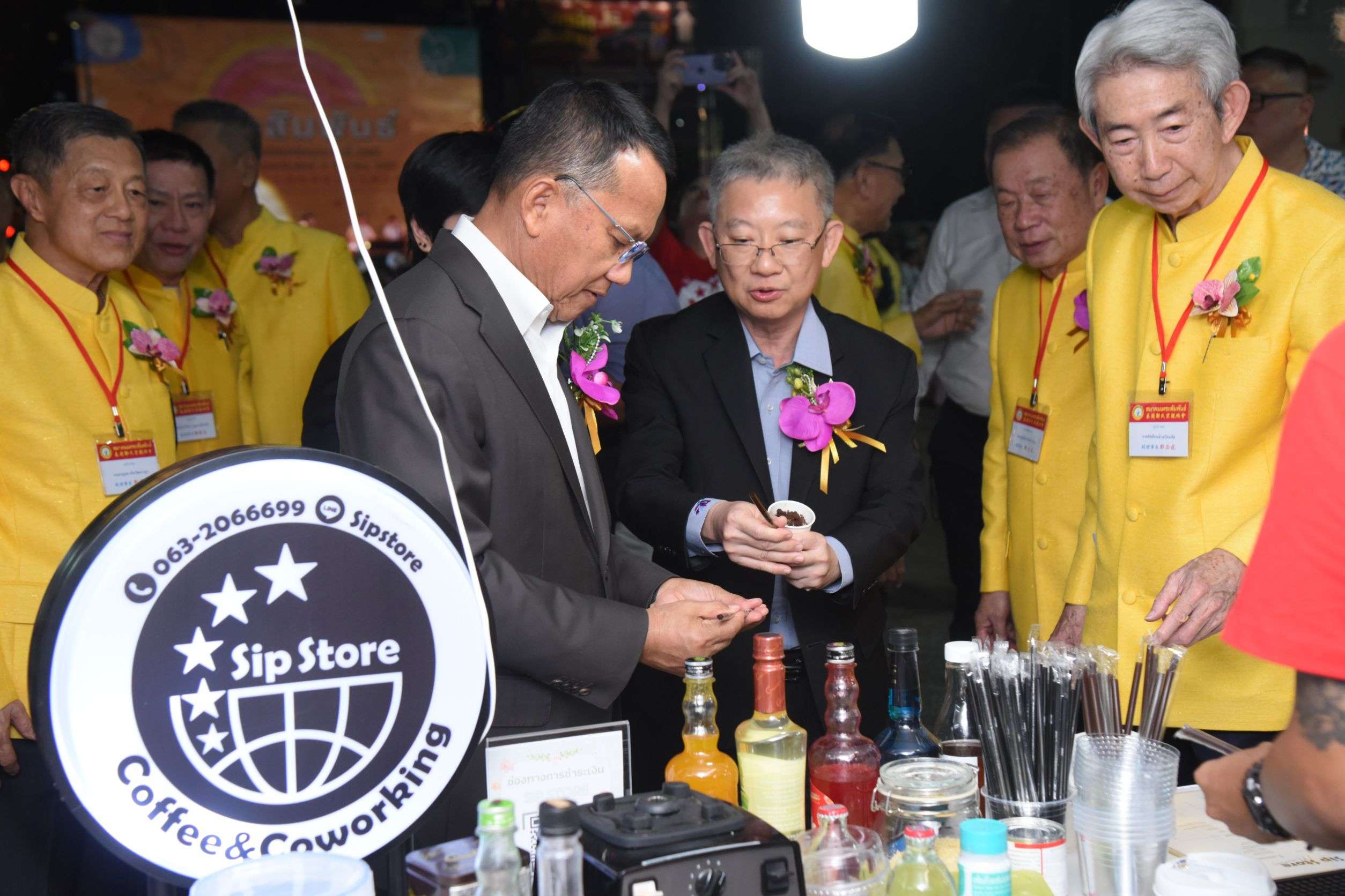 นายสมศักดิ์ กล่าวว่า การนับคาร์บนี้ ไม่ต้องอด แต่ให้งด หวาน มัน เค็ม แต่ตัวร้ายสุดคือหวาน โดยเฉพาะข้าวมีน้ำตาล มีคนไทยเสียชีวิตแต่ละปีกับ NCDs ประมาณ4 แสนราย ป่วยเพิ่มปีละ 2 ล้านราย อยู่ในการรักษา 33 ล้านคน เป็นโรคเบาหวาน 6.5 ล้านคน คนป่วยส่วนใหญ่เสียชีวิตปีละ 4 แสนคน เกิดจากกินไม่เป็น ถ้าเรากินเป็น เราก็จะไม่ป่วย รับประทานคาร์บตามปริมาณที่คำนวณออกมา คนตระกูลแต้เป็นคนมีสตางค์ พอเรามีสตางค์ เราต้องอยู่ใช้เงินนานๆ อายุยืนๆ จึงยกตัวบรรพบุรุษอายุยืน 90 กว่าปีที่มาร่วมงาน ยังมีสุขภาพแข็งแรง เพราะท่านทำตามแพย์ คือ ลด หวาน มัน เค็ม นอกจากนี้ตนในฐานะลูกหลายตระกูลแต้ได้ขอบคุณชาวสมาคมฯ ที่มีความเป็นปึกแผ่นและได้ช่วยเหลือพี่น้องคนไทยมาโดยตลอด ทุกครั้งที่มีการขอความร่วมมือต่างๆ ก็ได้รับความร่วมมืออย่างดียิ่ง ก็ได้ขอบคุณในฐานะบุคคลในรัฐบาลด้วย ทั้งนี้ก่อนกลับได้แวะเยี่ยมชมบูธกิจกรรมต่างๆของชาวสมาคมฯและสนใจในการสาธิตการออกกำลังกาย “โยคะฟลายไทย” ซึ่งได้เชิญชวนครูผู้ฝึกสอน มา ทำงานด้านการออกกำลังกายเพื่อสุขภาพกับกระทรวงสาธารณสุขอีกด้วย