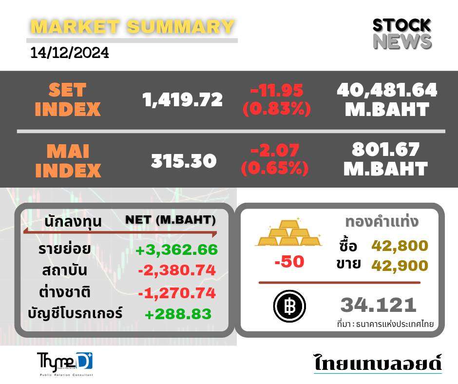 สรุปภาวะการลงทุนในตลาดหลักทรัพย์ ประจำวันที่ 16 ธันวาคม 2567