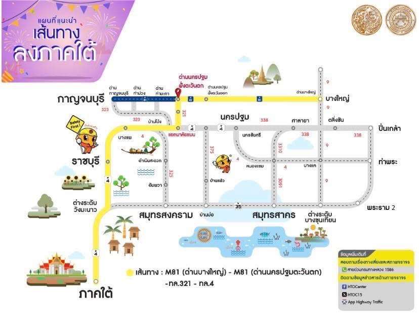 กรมทางหลวง โดยสำนักอำนวยความปลอดภัย แจ้งว่า ตามที่กรมทางหลวงจะเปิดให้บริการชั่วคราวทางหลวงพิเศษระหว่างเมืองหมายเลข 81 (มอเตอร์เวย์) สายบางใหญ่ – กาญจนบุรี ตลอดเส้นทางระยะทาง 96 กิโลเมตร เฉพาะช่วงเทศกาลปีใหม่ตั้งแต่วันที่ 26 ธ.ค. 67 เวลา 00.01 น. ถึง วันที่ 2 ม.ค. 68 เวลา 24.00 น. รวมถึงเทศกาลสงกรานต์ นั้น โดยผู้ใช้ทางที่มาจากกรุงเทพฯฝั่งเหนือและต้องการเดินทางสู่ภาคใต้ ขอประชาสัมพันธ์แนะนำให้ใช้มอเตอร์เวย์ M81 โดยเข้าจากด่านบางใหญ่ (ตรงข้ามเซ็นทรัล เวสต์เกต) จากนั้นเลี้ยวซ้ายออกที่ด่านนครปฐมฝั่งตะวันตกเข้าสู่ทางหลวงหมายเลข 321 (ถนนมาลัยแมน) ผ่านแยกมาลัยแมนเพื่อเข้าสู่ทางหลวงหมายเลข 4 (ถนนเพชรเกษม) มุ่งหน้าจังหวัดราชบุรี สำหรับเดินทางสู่ภาคใต้ต่อไป ซึ่งจะเป็นการหลีกเลี่ยงการจราจรติดขัดเพิ่มความสะดวกในการเดินทางช่วงเทศกาลได้เป็นอย่างดี