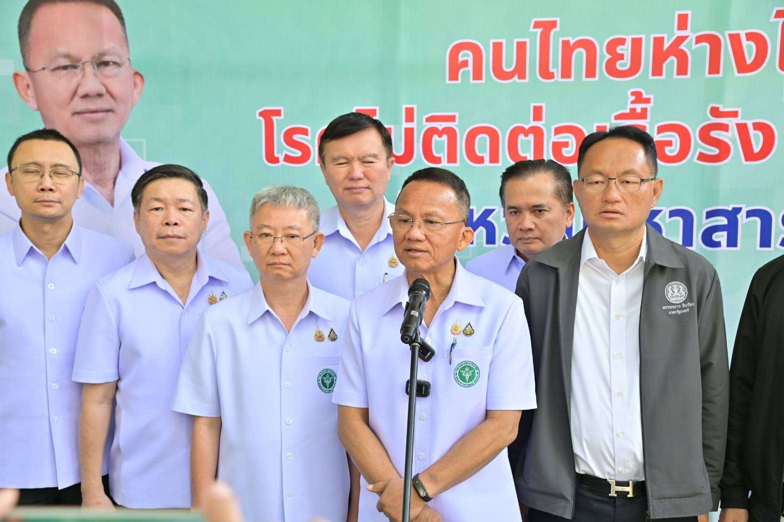 วันนี้ (17 มกราคม 2568) ที่ จังหวัดมหาสารคาม นายสมศักดิ์ เทพสุทิน รัฐมนตรีว่าการกระทรวงสาธารณสุข เปิดประชุมเสริมสร้างความเข้มแข็งและสนับสนุนการมีส่วนร่วมของภาคีเครือข่ายสุขภาพ ภายใต้แนวคิด คนไทยห่างไกล NCDs ด้วยกลไก อสม. พร้อมมอบชุดอุปกรณ์การทำงาน health station ให้กับตัวแทน อสม. และเปิดกิจกรรม Kick off ฉีดวัคซีนป้องกันการติดเชื้อไวรัส HPV 9 สายพันธุ์ โดยมี นพ.โอภาส การย์กวินพงศ์ ปลัดกระทรวงสาธารณสุข นายวิบูรณ์ แววบัณฑิต ผู้ว่าราชการจังหวัดมหาสารคาม นพ.เอกชัย เพียรศรีวัชรา ผู้ตรวจราชการกระทรวงสาธารณสุข เขตสุขภาพที่ 7 ดร.นพ.พิทักษ์พงศ์ พายุหะ นายแพทย์สาธารณสุขจังหวัดมหาสารคาม ผู้บริหาร บุคลากรกระทรวงสาธารณสุข หน่วยงานที่เกี่ยวข้อง และอสม. ร่วมงาน