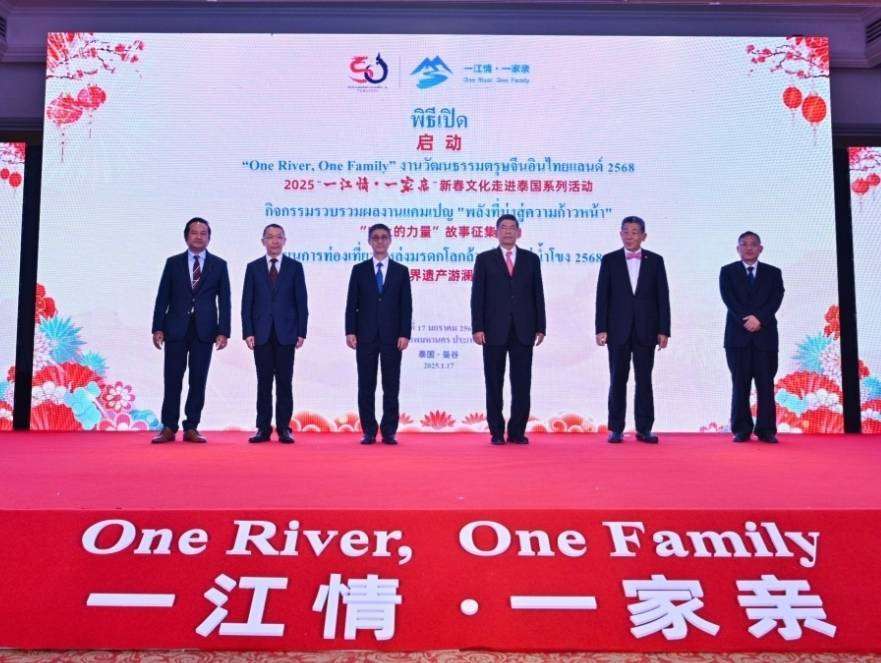 ที่กรุงเทพมหานคร วันที่ 17 ม.ค. ศูนย์การสื่อสารระหว่างประเทศเอเชียใต้และเอเชียตะวันออกเฉียงใต้แห่งยูนนาน และคณะเจ้าหน้าที่ระดับสูงของทางการจีน นำโดยนายเกา อั้นหมิง บรรณาธิการใหญ่ สำนักสารนิเทศต่างประเทศแห่งสาธารณรัฐประชาชนจีน เดินทางจากมณฑลยูนนานมาจัดกิจกรรมส่งเสริมความสัมพันธ์ระหว่าง 2 ประเทศ ภายใต้ชื่อ “One River, One Family งานวัฒนธรรมตรุษจีนอินไทยแลนด์ 2568 และงานประกาศผล 10 อันดับข่าวเด่นด้านความร่วมมือล้านช้าง-แม่น้ำโขง ประจำปี 2567” โดยมีนางสาวจิราพร สินธุไพร รัฐมนตรีประจำสำนักนายกรัฐมนตรี เข้าร่วมงาน พร้อมกับบุคคลสำคัญในแวดวงการเมืองและการศึกษา อาทิ ศาสตราจารย์นายแพทย์ ดร.กระแส ชนะวงศ์ อดีตรัฐมนตรีว่าการกระทรวงการต่างประเทศ ศาสตราจารย์กิตติคุณ ดร.สหัส บันฑิตสกุล อดีตรองนายกรัฐมนตรี ดร.สุวิทย์ คุณกิตติ อดีตรองนายกรัฐมนตรี และ ศาสตราจารย์ ดร.สุชาติ ธาดาธำรงเวช อดีตรัฐมนตรีว่าการกระทรวงการคลัง