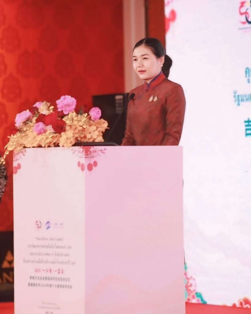 ในโอกาสนี้ นางสาวจิราพร สินธุไพร รัฐมนตรีประจำสำนักนายกรัฐมนตรี (รมต.นร.) ได้กล่าวสุนทรพจน์ถึงความสัมพันธ์ระหว่างไทย-จีนที่ผูกพันลึกซึ้งมาตั้งแต่อดีตผ่านการติดต่อค้าขายและแลกเปลี่ยนวัฒนธรรม ส่งผลในทางสร้างสรรค์ต่อทั้ง 2 ฝ่าย แม้ว่าตลอดระยะเวลาแห่งการสานสัมพันธ์ ไทยและจีนเผชิญกับความท้าทายหลายด้าน ทั้งการเมือง เศรษฐกิจ และสังคม แต่ทั้ง 2 ประเทศก็ยังคงกระชับความสัมพันธ์ได้อย่างแข็งแกร่ง ด้วยความเข้าใจซึ่งกันและกันและต่างมีความมุ่งมั่นที่จะร่วมมือกันแก้ไขปัญหา ซึ่งจะเป็นประโยชน์ทั้งในระดับประชาชน ระดับประเทศและระดับภูมิภาค