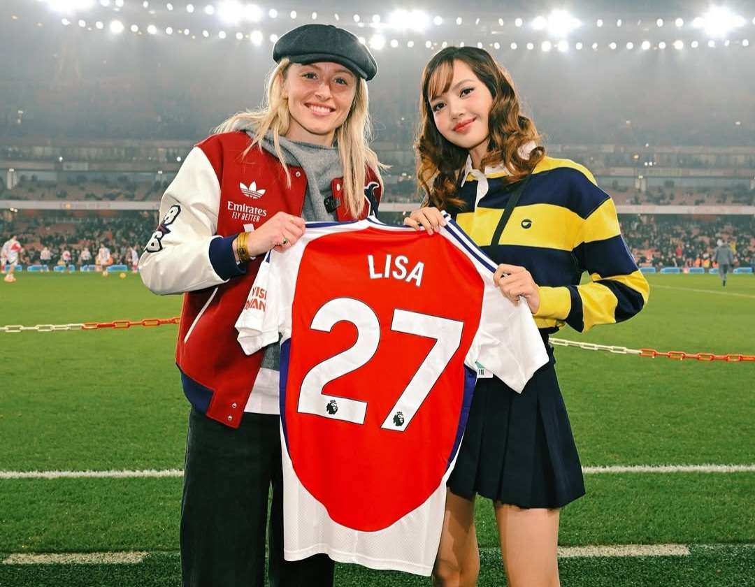 อาร์เซน่อล วีเมนส์ เอฟซี โพสต์ภาพที่ เลอาห์ วิลเลียมสัน แข้งทีมหญิงอาร์เซนอล มอบเสื้อแข่งที่มีการสกรีนชื่อ และเบอร์ 27 ให้กับ ”ลิซ่า” ลลิษา มโนบาล สมาชิกวง BLACKPINK ศิลปินดังชาวไทย หลังได้รับหน้าที่เชิญเหรียญให้ผู้ตัดสินเสี่ยงทายเลือกแดนในเกมที่ อาร์เซน่อล เปิด เอมิเรสต์ สเตเดียม ชนะ ท็อตแนม ฮอตสเปอร์ 2-1 เมื่อวันที่ 15 ม.ค. ที่ผ่านมา