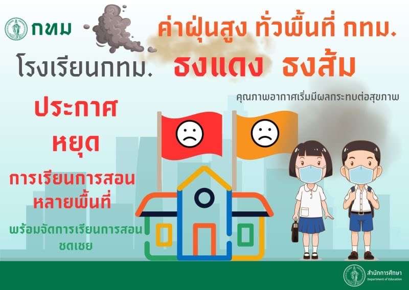 - โรงเรียนคลองหนองใหญ่ เขตบางแค มีคำสั่งปิดโรงเรียน จำนวน 2 วัน ตั้งแต่วันที่ 20 – 21 มกราคม 2568 โดยจัดการเรียนการสอนชดเชยหลังเลิกเรียนและออนแฮนด์