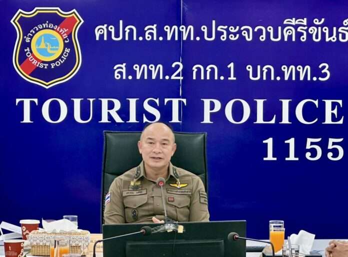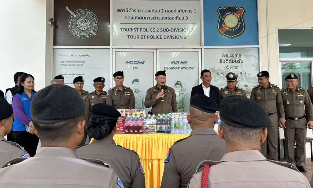 ทั้งนี้ พล.ต.อ.ประจวบฯ ลงพื้นที่ประชุมติดตามการปฏิบัติตามมาตรการดูแลความปลอดภัยนักท่องเที่ยว ในพื้นที่ ภ.7 และตรวจเยี่ยมมอบสิ่งของบำรุงขวัญและกำลังใจให้แก่เจ้าหน้าที่ผู้ปฏิบัติหน้าที่ โดยมี พล.ต.ต.นครินทร์ สุคนธวิท ผบก.ภ.จว.กาญจนบุรี รรท.ผบก.ภ.จว.ประจวบคีรีขันธ์ , นายอติชาติ ชัยศรี รองนายกเทศมนตรีเมืองหัวหิน , ผู้แทน ททท.ประจวบคีรีขันธ์ ผู้ประกอบการธุรกิจโรงแรม ภาคเอกชนและเจ้าหน้าที่ที่เกี่ยวข้อง เข้าร่วม ณ ส.ทท.2 กก.1 บก.ทท.3 อ.หัวหิน จ.ประจวบคีรีขันธ์ ซึ่งพื้นที่รับผิดชอบของ ส.ทท.2 กก.1 บก.ทท.3 โดยเฉพาะอำเภอหัวหิน จ.ประจวบคีรีขันธ์ เป็นจุดหมายปลายทางที่ได้รับความนิยมสูงจากนักท่องเที่ยวทั้งชาวไทยและชาวต่างชาติ มีปริมาณนักท่องเที่ยวที่เพิ่มขึ้นทุกปี มีโครงสร้างพื้นฐานและสิ่งอำนวยความสะดวกต่างๆ รองรับการท่องเที่ยวอย่างต่อเนื่อง ถือเป็นเมืองที่มีศักยภาพทางการท่องเที่ยวที่แข็งแกร่ง สร้างรายได้ให้ประเทศเป็นจำนวนมาก