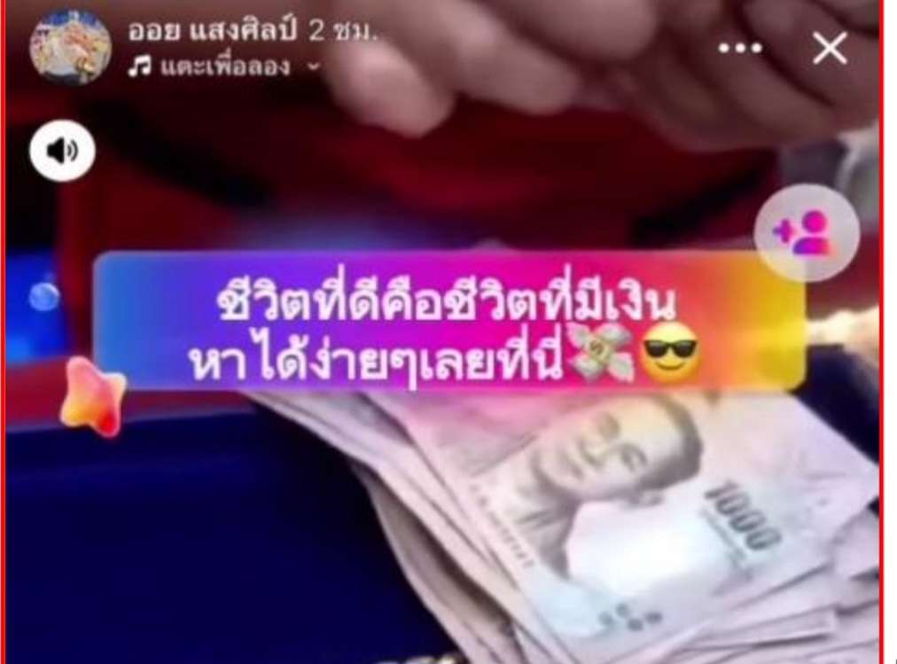 ล่าสุดตำรวจไซเบอร์ กก.1 บก.สอท.3 ตรวจสอบพบว่ามีผู้ใช้เฟซบุ๊กชื่อ “ออย แสงศิลป์ (Chatatorn Thongburan)” ซึ่งเป็นศิลปินนักร้องในช่องยูทูป มีเพลงดังที่มียอดวิวกว่า 200 ล้านวิว และในเฟซบุ๊กมีผู้ติดตามกว่า 4 แสนคน ได้โพสต์โฆษณาชักชวนให้เข้าเล่นการพนันออนไลน์ โดยมีการแนบลิงค์เว็บพนันออนไลน์ด้วย ผบช.สอท. จึงสั่งการให้พล.ต.ต.ชัชปัณฑกานต์ คล้ายคลึง ผบก.สอท.1 รรท.ผบก.สอท.3 และ พ.ต.อ.อภิรักษ์ จำปาศรี ผกก.1 บก.สอท.3 ทำการสืบสวนรวมรวบพยานหลักฐาน เพื่อติดตามจับกุม