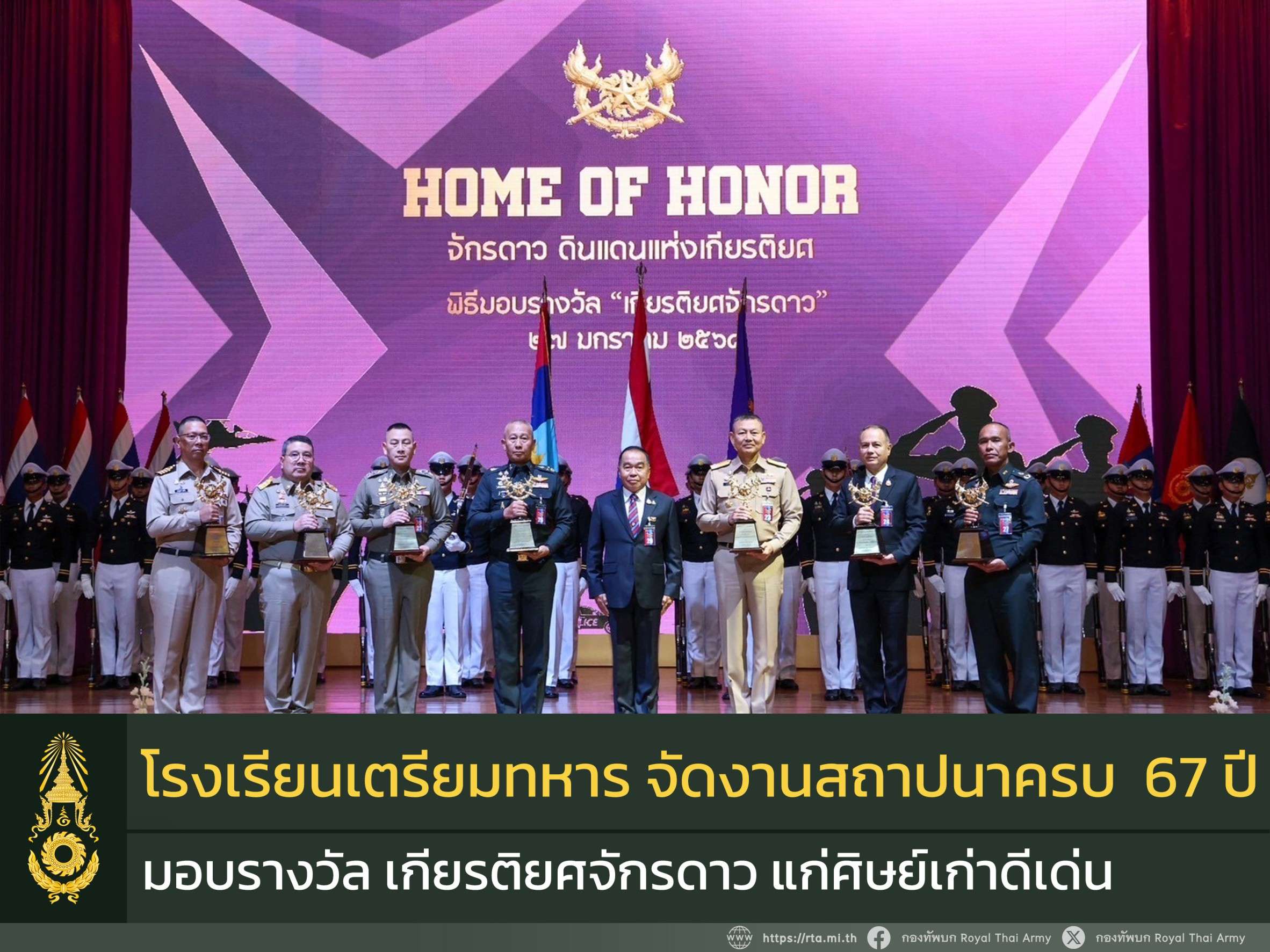ทั้งนี้ กองทัพบกขอแสดงความยินดีแก่ศิษย์เก่าโรงเรียนเตรียมทหารทุกท่านที่ได้รับรางวัลเกียรติยศจักรดาวในครั้งนี้ และขอขอบคุณที่ได้ทุ่มเท สานต่องานและปฏิบัติภารกิจต่างๆ เพื่อเป็นตัวอย่างให้แก่กำลังพลของกองทัพบก และสร้างประโยชน์ต่อกองทัพ ประชาชนและประเทศชาติด้วยดีเสมอมาอย่างเต็มกำลังความสามารถ