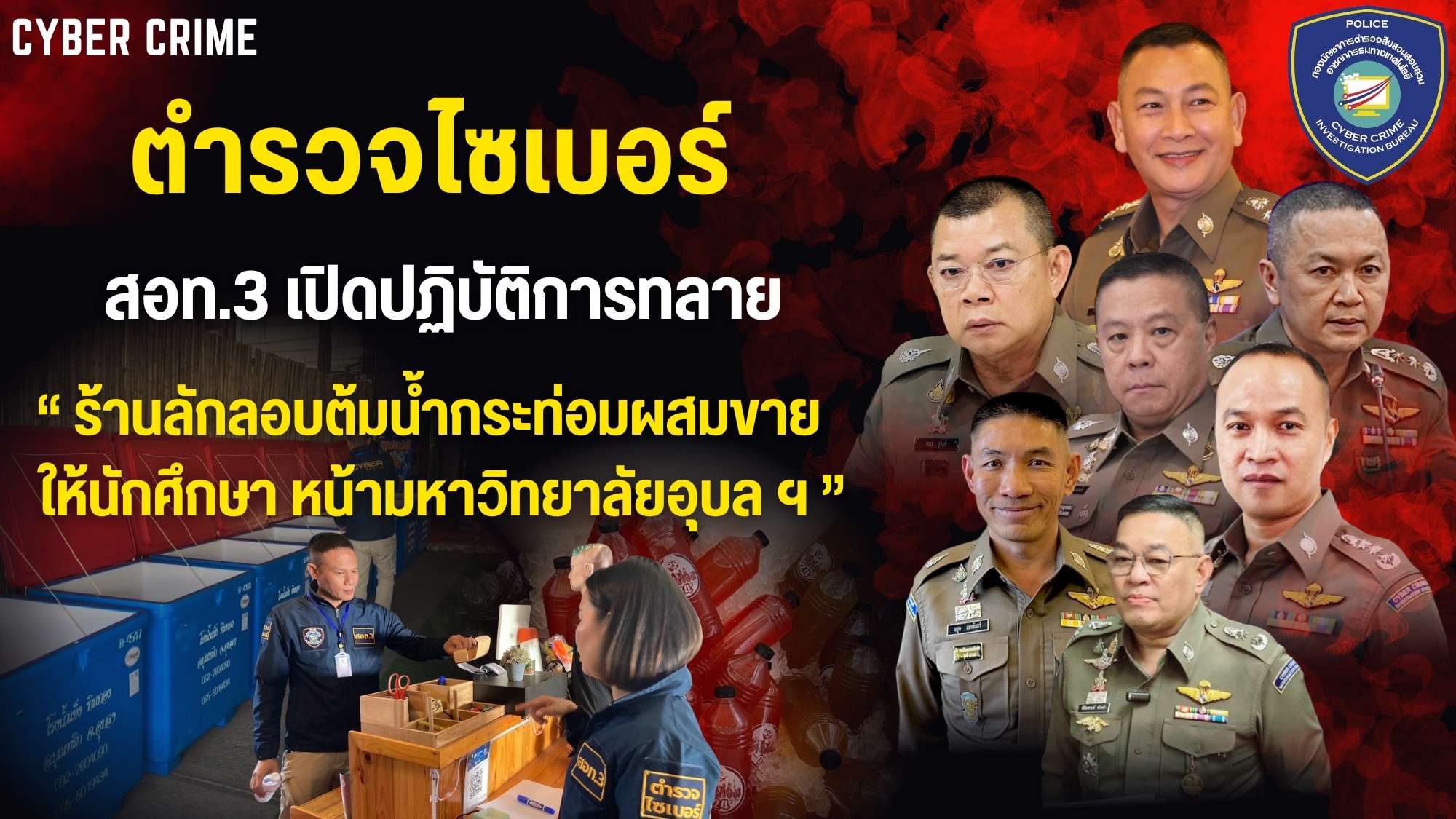 ภายใต้การอำนวยการของ พล.ต.ต.ชัชปัณฑกาณฑ์ คล้ายคลึง ผบก.ฯ รรท.ผบก.สอท.3,พ.ต.อ.คัมภีร์ พรหมสนธิ รอง ผบก.สอท.3, พ.ต.อ.พัฒนา ฉายาวัฒน์ รอง ผบก.สอท.3, และ พ.ต.อ.พรณรงค์ สุริยชัยวงษ์ รอง ผบก.สอท.3, ได้สั่งการให้ พ.ต.อ.มรกต แสงสระคู ผกก.2 บก.สอท.3, พ.ต.ท.ณัฐพงษ์ พรมไพร รอง ผกก.2 สอท.3 ,พร้อมกำลังเจ้าหน้าที่ตำรวจ กก.2 บก.สอท.3 เปิดปฏิบัติการ “บุกทลายร้านจำหน่ายน้ำกระท่อมให้นักศึกษาหน้ามหาวิทยาลัยอุบลราชธานี”