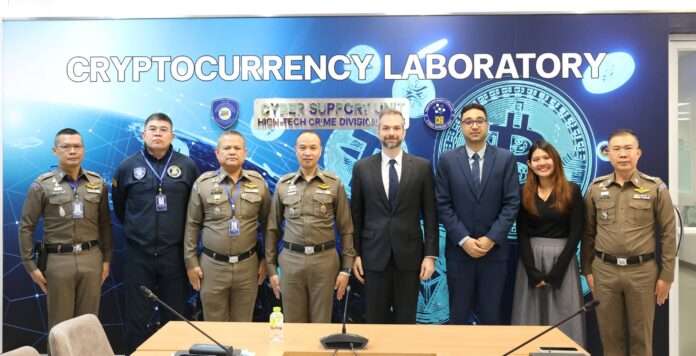 วันที่ 28 ม.ค. 2568 เวลา 10.00 น. พล.ต.ท.ไตรรงค์ ผิวพรรณ ผบช.สอท. พร้อมด้วยคณะผู้บริหารระดับสูงของ บช.สอท. ได้ให้การต้อนรับและหารือกับ Mr. Joshua I. James ตำแหน่ง Regional Counter-Cybercrime Coordinator จากสำนักงานป้องกันยาเสพติดและอาชญากรรมแห่งสหประชาชาติ (UNODC) และคณะเจ้าหน้าที่ ณ ห้อง Crypto Currency Laboratory ชั้น 5 กองบัญชาการตำรวจสืบสวนสอบสวนอาชญากรรมทางเทคโนโลยี (บช.สอท.) โดยการประชุมในครั้งนี้มุ่งเน้นการหารือใน 4 ประเด็นสำคัญ ดังนี้