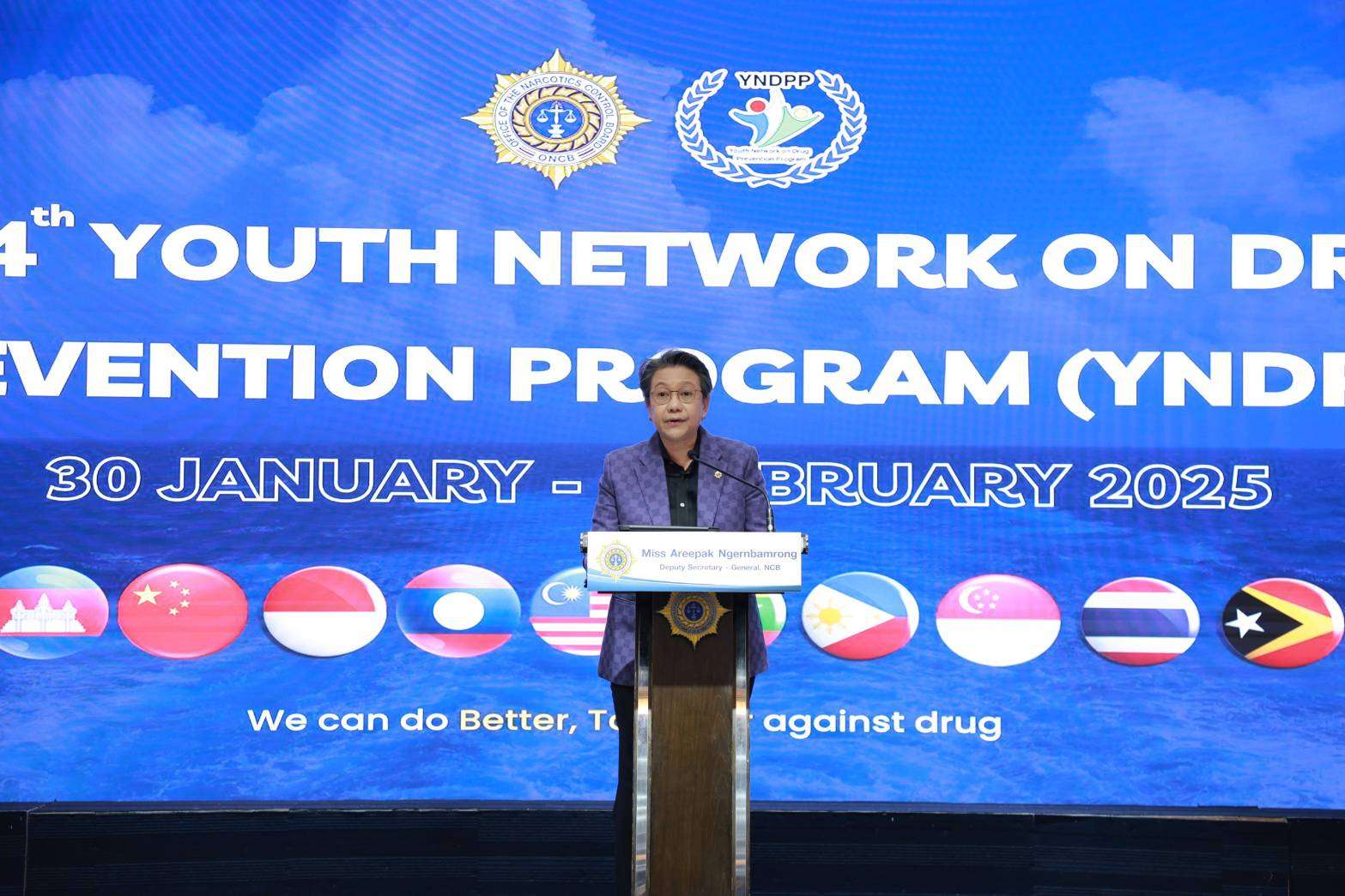 นางสาวอารีภักดิ์ เงินบำรุงรองเลขาธิการ ป.ป.ส. กล่าวว่า ปัจจุบันปัญหายาเสพติดเป็นปัญหาที่มีแนวโน้มเพิ่มขึ้นโดยเฉพาะในกลุ่มเด็กและเยาวชนซึ่งสามารถเข้าถึงยาเสพติดได้หลากหลายช่องทางมากขึ้น ส่งผลให้อายุเฉลี่ยของผู้เสพผู้ติดที่เป็นกลุ่มเยาวชนลดลง ส่งผลกระทบต่อประเทศ เนื่องจากเด็กและเยาวชนเป็นทรัพยากรที่มีคุณค่า และเป็นกำลังสำคัญในการที่จะพัฒนาประเทศ สำนักงาน ป.ป.ส. จึงได้จัดโครงการเครือข่ายเยาวชนระหว่างประเทศ เพื่อการป้องกันยาเสพติดขึ้น เพื่อให้เยาวชนจากแต่ละประเทศได้ศึกษาแลกเปลี่ยนความรู้และเสริมสร้างประสบการณ์การเรียนรู้ ทั้งในมิติด้านการป้องกันและแก้ไขปัญหายาเสพติด ทั้งยังก่อให้เกิดการพัฒนาความร่วมมือระหว่างประเทศ และการสร้างเครือข่ายความร่วมมือ ในระดับเยาวชนระหว่างประเทศผ่านการประชุมผู้นำเยาวชน อันจะเป็นเวทีในการร่วมแลกเปลี่ยนความรู้ แนวคิด และสะท้อนมุมของเยาวชนในการมีส่วนร่วมเพื่อการป้องกันและแก้ไขปัญหายาเสพติดต่อไป