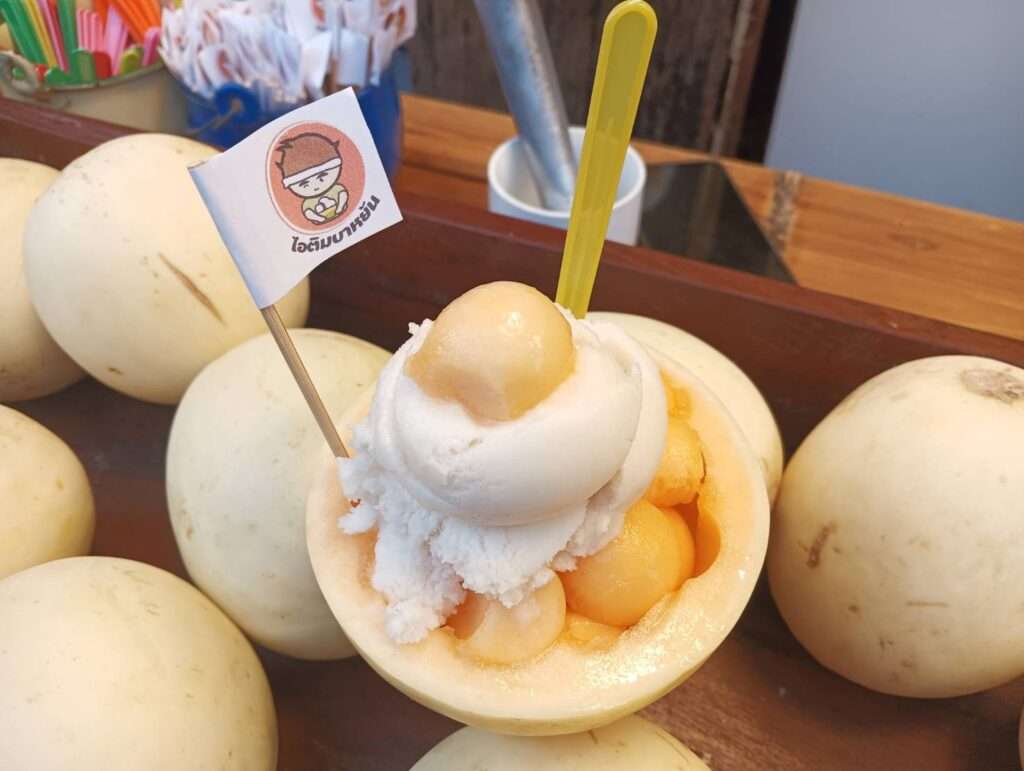ไฮไลท์ที่ต้องแนะนำอีกหนึ่งอย่างคือ “ไอศกรีมแคนตาลูป” ขายอยู่บนถนนคนเดิน ข้างโรงแรมที่ลุงพัก ต้องลองครับ ของเขาดีจริงๆ