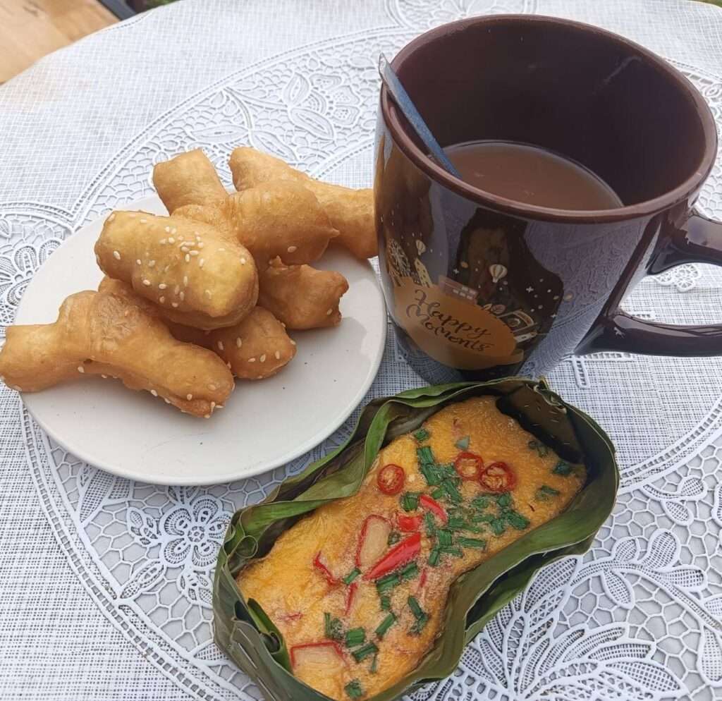 เสร็จภารกิจขึ้นภูทอก ชมตะวันขึ้นและทะเลหมอก ก็กลับมายังด้านล่าง มีร้านอาหารมากมายไว้คอยบริการ ลุงเลือกร้านได้ ลุงก็เข้าไปนั่งในร้าน มีผู้คนมาใช้บริการหน้าตาพอสมควร ลุงสั่งข้าวปุ้นน้ำแจ่ว ไข่กระทะ ขนมปังญวน ไข่ป่ามและกาแฟ มากินพร้อมกันทีเดียวอาหารแต่ละอย่าง ราคาไม่แพง อาหารเช้าพื้นบ้าน และอาหารอื่นๆ สามารถเลือกกินได้หลายร้าน พอใจร้านไหนก็เข้าร้านนั้น ราคามาตรฐานเท่ากันทุกร้าน