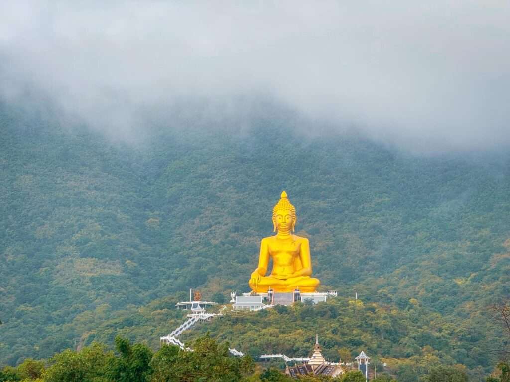 ณ ที่แห่งนี้ เรายังได้พักสายตากับวิวแบบพาโนรามามองเห็นทุ่งหญ้าอันเขียวขจีของพื้นที่บริเวณใกล้เขื่อนป่าสักชลสิทธิ์ นอกจากนี้ยังได้นมัสการพระพุทธรูปที่ประดิษฐานอยู่ด้านบนยอดเขาอันสูงตระหง่าน สงบเงียบ และที่นี่มีเรื่องเล่าว่าเกจิชื่อดังเคยมาใช้สถานที่แห่งนี้ปฏิบัติธรรมจำศีลภาวนา ดังนั้นใครมาเที่ยวที่นี่ก็ได้ทั้งฟอกปอดและฟอกใจไปในคราวเดียวกัน