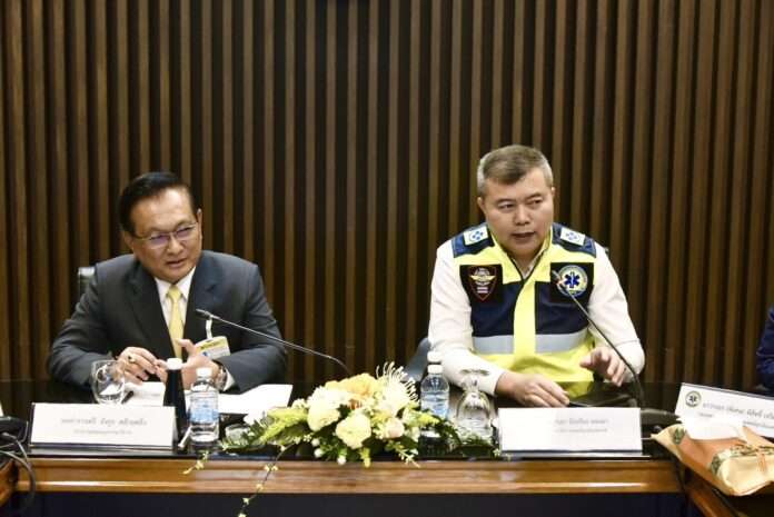 วันที่ 6 กุมภาพันธ์ 2568 ที่สถาบันการแพทย์ฉุกเฉินแห่งชาติ จังหวัดนนทบุรี เรืออากาศเอกนายแพทย์อัจฉริยะ แพงมา เลขาธิการสถาบันการแพทย์ฉุกเฉินแห่งชาติ พร้อมคณะผู้บริหาร ให้การต้อนรับคณะอนุกรรมาธิการความปลอดภัยด้านการท่องเที่ยวและการกีฬา ในคณะกรรมาธิการการท่องเที่ยวและการกีฬา วุฒิสภา นำโดย พล.ต.ต.อังกูร คล้ายคลึง ประธานคณะอนุกรรมาธิการฯ ในโอกาสที่คณะได้เดินทางมาศึกษาดูงานความปลอดภัยด้านการท่องเที่ยว