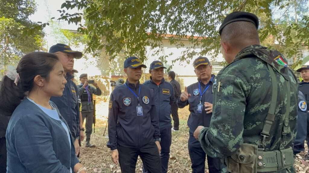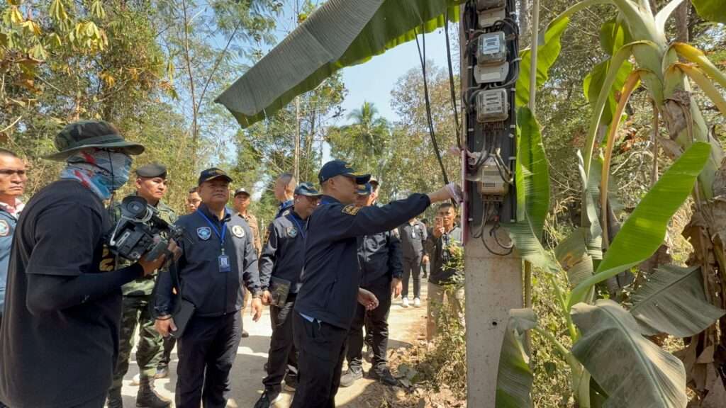 เมื่อเวลา 12.30 น. วันที่ 6 ก.พ.68 พล.ต.ท.ไตรรงค์ ผิวพรรณ ผบช.สอท., พล.ต.ต.ทินกร รังมาตย์ รอง ผบช.สอท., พ.ต.อ.ศรายุทธ จุณณวัตต์ รรท.ผบก.สอท.2, พ.ต.อ.กฤตัชญ์ บำรุงรัตนยศ รรท.ผบก.สอท.4, พ.ต.อ.ชัยรัตน์ วรุณโณ รอง ผบก.สอท.2, พ.ต.อ.ขจร อบทอง รอง ผบก.สอท.2, พ.ต.อ.ปกรณ์กิตต์ ธนวรินทร์กุล ผกก.3 บก.สอท.2 และ นายพงษ์ศักดิ์ ทรัพยาคม ผู้อำนวยการสำนักงาน กสทช.ภาค1 สนธิกำลังเจ้าหน้าที่ตำรวจ สภ.สังขละบุรี จ.กาญจนบุรี เจ้าหน้าที่ฝ่ายปกครองและทหาร ร่วมกันเปิดยุทธการ “ระเบิดสะพานโจร“ ตรวจสอบ ชิม ไฟ สาย เสา บริเวณชายแดนเมียนม่า ค้นเป้าหมาย 4 จุดพื้นที่ด่านเจดีย์สามองค์ อ.สังขละบุรี จ.กาญจนบุรี ตรวจสอบจุดติดตั้งเสาสัญญาณและลากสายสัญญาณอินเทอร์เน็ตข้ามฝั่งไปยังเมืองพญาตองซู ประเทศเมียนมา ซึ่งต้องสงสัยว่าอาจถูกนำใช้ประโยชน์ในการหลอกลวงออนไลน์ ทั้งหมด 4 จุด พบความผิดปกติ 3 จุด