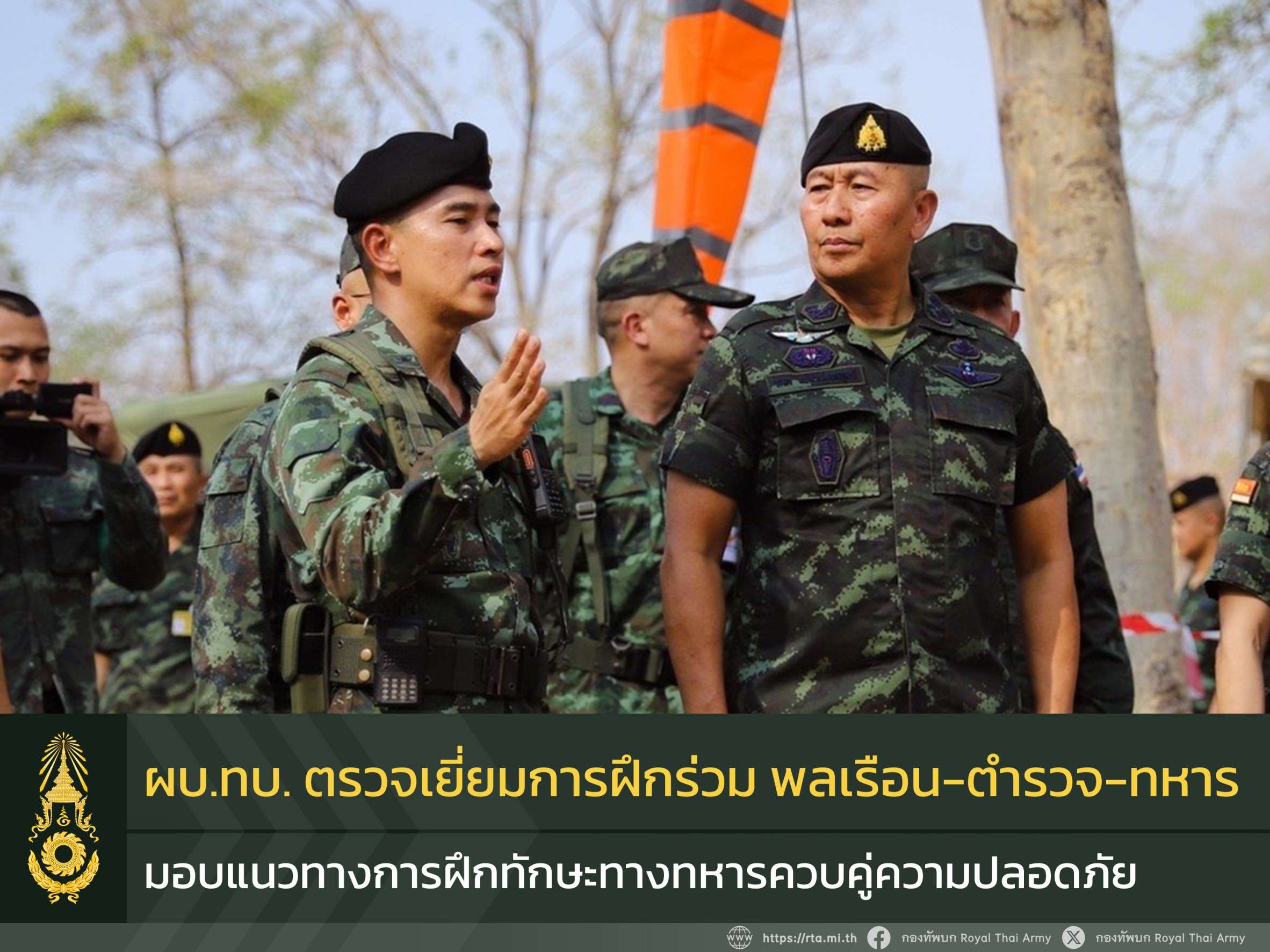 วันนี้ (7 ก.พ. 68) พลเอก พนา แคล้วปลอดทุกข์ ผู้บัญชาการทหารบก รับฟังการบรรยายสรุป และตรวจเยี่ยม การฝึกปฏิบัติการร่วมพลเรือน ตำรวจ ทหาร ประจำปี 2568 ณ พื้นที่ฝึกจังหวัดลพบุรี เพื่อตรวจเยี่ยมการฝึกในส่วนของกองพันทหารราบที่ 1 กรมทหารราบที่ 2 รักษาพระองค์ ณ พื้นที่ฝึกกองพันรบพิเศษที่ 2 กรมรบพิเศษที่ 2 จากนั้นเดินทางไปยังพื้นที่ฝึกโรงพยาบาลอานันทมหิดล เพื่อตรวจเยี่ยมการฝึกในด้านกิจการพลเรือน