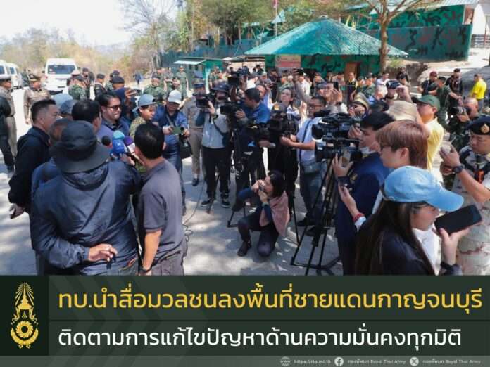 วันนี้ (9 ก.พ.68) พันเอก ฐิต์รัชช์ สมบัติศิริ รองเลขานุการกองทัพบก/โฆษกกองทัพบก นำคณะสื่อมวลชนสายทหารลงพื้นที่เยี่ยมชมการปฏิบัติงานของเจ้าหน้าที่ทหารชายแดนร่วมกับส่วนราชการในพื้นที่ จ.กาญจนบุรี ณ ศุลกากรด่านพุน้ำร้อน เพื่อติดตามการปฏิบัติงานและเข้าร่วมการประชุมขับเคลื่อนนโยบายเร่งด่วนของรัฐบาลในการสกัดกั้นและปราบปรามยาเสพติด และการกระทำผิดกฎหมายตามแนวชายแดน การป้องกันและแก้ไขปัญหาไฟป่า หมอกควัน และฝุ่นละออง โดยมี พลโท อมฤต บุญสุยา แม่ทัพภาคที่ 1/ ผู้บัญชาการศูนย์ปฏิบัติการกองทัพภาคที่ 1 พร้อมด้วยหัวหน้าส่วนราชการที่เกี่ยวข้องเข้าร่วมการประชุม ซึ่งเป็นการบูรณาการทำงานร่วมกันระหว่างกองกำลังสุรสีห์, มณฑลทหารบกที่ 17, หน่วยบัญชาการสกัดกั้นและปราบปรามยาเสพติดสารตั้งต้นและเคมีภัณฑ์ชายแดนภาคตะวันตก (นบ.ยส.17), ศูนย์สั่งการชายแดนไทยกับประเทศเพื่อนบ้านจังหวัดกาญจนบุรี และส่วนราชการในพื้นที่ อาทิ ศุลกากร, สำนักงานตรวจคนเข้าเมือง, จังหวัดกาญจนบุรี, องค์การบริหารส่วนจังหวัดกาญจนบุรี และตำรวจภูธรจังหวัดกาญจนบุรี เพื่อรักษาความสงบสุข สกัดกั้นยาเสพติดและสิ่งผิดกฎหมายไม่ให้รั่วไหลเข้ามาในประเทศไทย