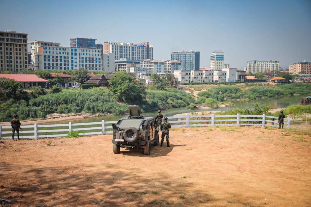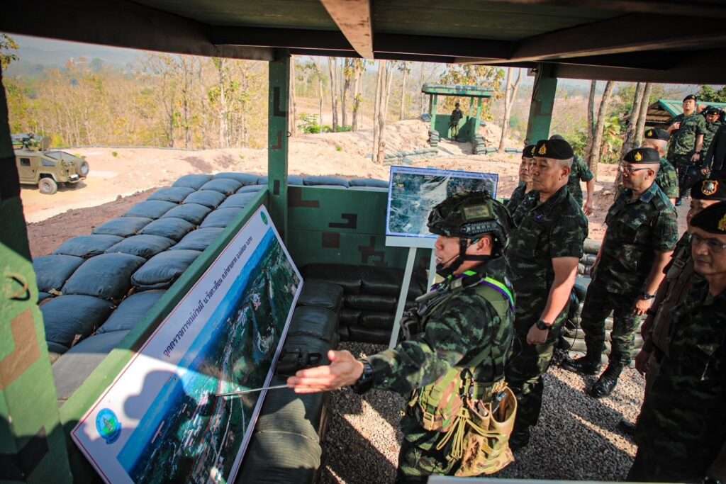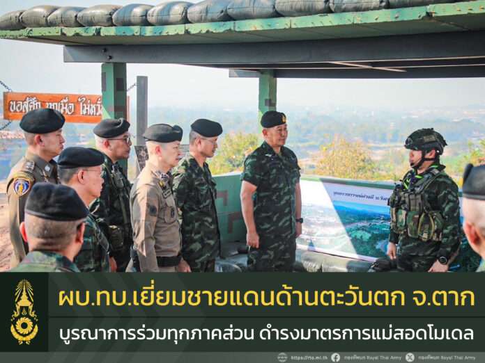 ผู้บัญชาการทหารบก/ผู้บัญชาการศูนย์ปฏิบัติการกองทัพบก พร้อมคณะฯ ได้รับฟังการบรรยายสรุปสถานการณ์และการปฏิบัติงานที่สำคัญ จากกองกำลังนเรศวร พร้อมตรวจเยี่ยมกำลังพลกองร้อยทหารราบที่ 433 หน่วยเฉพาะกิจราชมนู ณ ฐานปฏิบัติการม่วงมี อำเภอแม่สอด จังหวัดตาก ซึ่งเป็นจุดตรวจการณ์สำคัญบริเวณจุดผ่านแดนถาวรสะพานมิตรภาพไทย – เมียนมา แห่งที่ 2, จากนั้นคณะผู้บัญชาการทหารบกได้เดินทางไปตรวจพื้นที่ตามแนวชายแดน ณ จุดสำคัญดังนี้ บริเวณท่าข้าม 34 (ท่าศาลเจ้า) ตำบลท่าสายลวด, จุดตรวจการณ์บ้านวังแก้ว อำเภอแม่สอด, จุดตรวจการสันยายหลู่ อำเภอแม่สอด และ จุดตรวจการบ้านช่องแคบ อำเภอพบพระ ซึ่งเป็นจุดตรวจการณ์ที่พบปัญหาอาชญากรรมข้ามชาติในพื้นที่แนวชายแดนฝั่งเมียนมา ซึ่งที่ผ่านมา ปรากฎข่าวสารที่สำคัญ ได้แก่ การหลอกลวงออนไลน์/Call Center, การค้ามนุษย์, การลักลอบเข้าเมือง, การลักลอบขนยาเสพติดและอาวุธสงคราม
