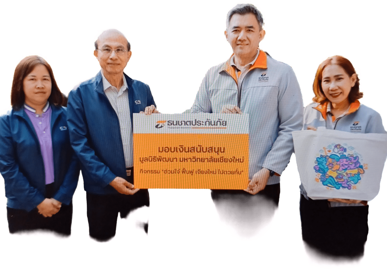 บริษัท ธนชาตประกันภัย จำกัด (มหาชน) โดย นายมหพล จินดาขันธ์ ประธานเจ้าหน้าที่สายงานบริหารประสบการณ์ลูกค้า มอบเงินสนับสนุน จำนวน 30,000 บาท ซึ่งเป็นรายได้หลังหักค่าใช้จ่ายจากการจำหน่ายกระเป๋าผ้าในกิจกรรม “ฮ่วมใจ๋ ฟื้นฟูเจียงใหม่ ไปตวยกั๋น” ให้กับมูลนิธิพัฒนามหาวิทยาลัยเชียงใหม่ สำนักงานบริหารและจัดการทรัพย์สิน มหาวิทยาลัยเชียงใหม่ โดยมี รศ.นพ.ธนู หินทอง กรรมการและเลขานุการมูลนิธิฯ และผู้อำนวยการสำนักงานบริหารและจัดการทรัพย์สิน เป็นผู้แทนรับมอบ เพื่อนำไปสนับสนุนภารกิจด้านการฟื้นฟูจังหวัดเชียงใหม่จากสถานการณ์อุทกภัยที่เกิดขึ้นเมื่อปลายปี 2567 ซึ่งยังมีผู้ประสบภัยที่ต้องดำเนินการช่วยเหลืออย่างต่อเนื่อง และร่วมในโครงการรณรงค์งดเผา เพื่อลดปัญหาไฟป่าและหมอกควัน ที่ทางมูลนิธิฯ เดินหน้าจัดหาอุปกรณ์ดับไฟป่าและของใช้จำเป็นในการลาดตระเวนและดับไฟป่าให้กับเจ้าหน้าที่ที่ทำงานดับไฟป่า รวมถึงโครงการสร้างห้องปลอดฝุ่นให้กับศูนย์พัฒนาเด็กเล็ก เพื่อสร้างห้องปลอดฝุ่นสำหรับศูนย์พัฒนาเด็กเล็กในพื้นที่ภาคเหนือ สร้างระบบเติมอากาศสะอาด (Clean air) โดยโครงการนี้ มูลนิธิฯ ตั้งเป้าหมายปกป้องเด็ก ๆ จากฝุ่น PM 2.5 และส่งเสริมสภาพแวดล้อมที่ปลอดภัย รวมจำนวน 603 ศูนย์