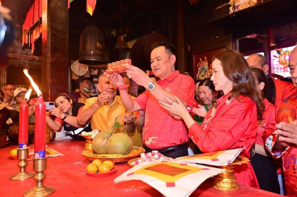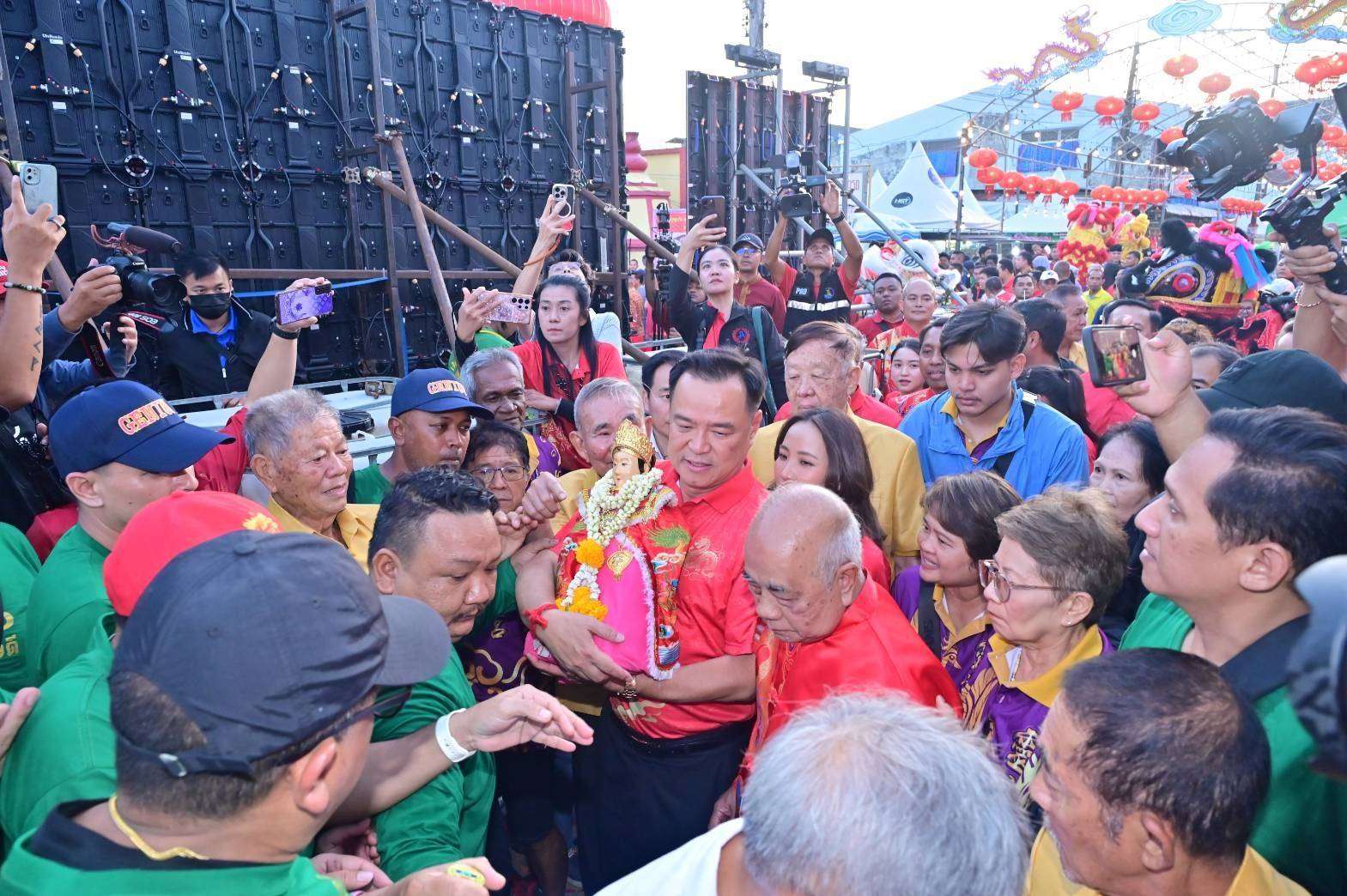 โอกาสนี้ นายอนุทินได้ประกอบพิธีอัญเชิญเจ้าแม่ลิ้มกอเหนี่ยวกลับสู่ศาลเจ้าเล่งจูเกียง ประทับ ณ แท่นประดิษฐาน แล้วเป็นประธานมอบประกาศเกียรติคุณให้กับผู้สนับสนุนการจัดงาน และมอบโล่รางวัลชนะเลิศการแข่งขันบาสเกตบอลประเพณีสมโภชเจ้าแม่ลิ้มกอเหนี่ยว แล้วทำพิธีเปิดงาน พร้อมร่วมรับชมการแสดง แสง เสียง สื่อผสม เรื่อง “ศรัทธาสถิต เจ้าแม่ลิ้มกอเหนี่ยว โรจน์รวีนิรมิต ศาสนิกสัมพันธ์ มหาจักรีบรมราชวงศ์ พระปรเมนทรแห่งแผ่นดินสยาม” สะท้อนอัตลักษณ์ วิถีชีวิต ความเชื่อ ความศรัทธาต่อองค์เจ้าแม่ลิ้มกอเหนี่ยว และความจงรักภักดีต่อพระบาทสมเด็จพระเจ้าอยู่หัวและพระบรมราชจักรีวงศ์