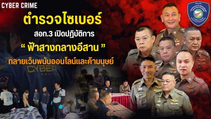 ตำรวจไซเบอร์ 3 เปิดปฏิบัติการ “ฟ้าสางที่กลางอีสาน” จับกุมเดนสังคมข้อหาค้ามนุษย์ กระทำชำเราเด็กแล้วอัดคลิปขายกลุ่มลับ พร้อมทลายเครือข่ายหวยลาวออนไลน์ และอาวุธปืน