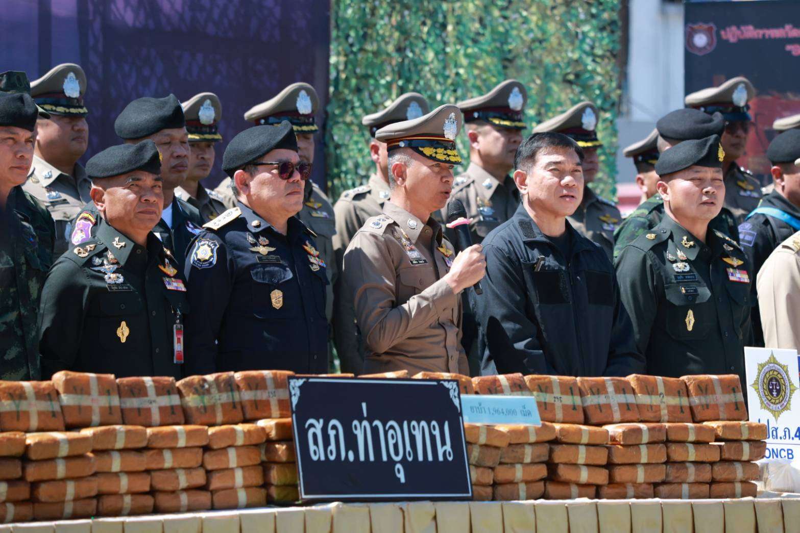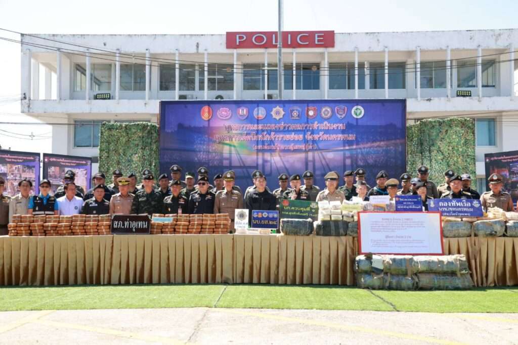 วันพฤหัสบดีที่ 13 กุมภาพันธ์ 2568 พล.ต.ท.ภาณุรัตน์ หลักบุญ เลขาธิการ ป.ป.ส พลโท บุญสิน พาดกลาง แม่ทัพภาคที่ 2 นายปราชญา อุ่นเพชรวรากร ผู้ว่าราชการจังหวัดนครพนม และนายปฤณ เมฆานันท์ ผู้อำนวยการสำนักปราบปรามยาเสพติด นายคณิศร ภาพีรนนท์ ผู้อำนวยการสำนักงาน ปปส.ภาค 4 พล.ต.ต. ศักดิ์ชาย สาดมะเริง ผบก.ภ.จว.นครพนม ผู้กำกับ สภ.ท่าอุเทน ตำรวจภูธรภาค 4 พร้อมเจ้าหน้าที่ ร่วมแถลงข่าวยุทธการเด็ดปีก นักค้ารายย่อย เพื่อลดความเดือดร้อนของพี่น้องประชาชน