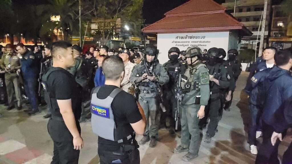 กระทั่งช่วงเช้ามืดของวันที่ 13 ก.พ.68 พล.ต.ต.กฤตัชญ์ บำรุงรัตนยศ ผบก.สอท.4 ได้ระดมกำลังเจ้าหน้าที่ตำรวจในสังกัดเข้าตรวจค้นพื้นที่เป้าหมายทั้ง 6 จุด ดังนี้