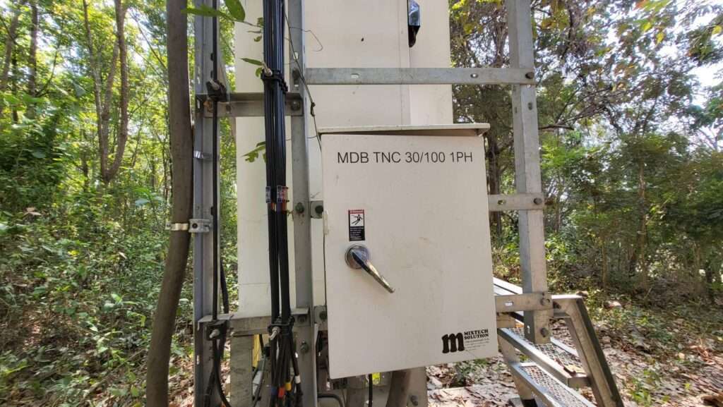 โดยเสาสัญญาณโทรศัพท์ดังกล่าว ซุกซ่อนอยู่ท่ามกลางต้นไม้รกทึบในสวนยางพาราริมแม่น้ำเมย ซึ่งตั้งอยู่ฝั่งตรงข้ามเมืองอพอลโล่ ตอนปลายของเมืองชะเวโก๊กโก โดยก่อนการเข้าตรวจค้นเมื่อวันที่ 11 ก.พ.68 ยังพบว่ามีการปล่อยสัญญาณเต็มอยู่ และยังพบมีแผงปล่อยสัญญาณหันไปยังฝั่งพม่าอยู่ แต่ปัจจุบันไม่มีแล้ว