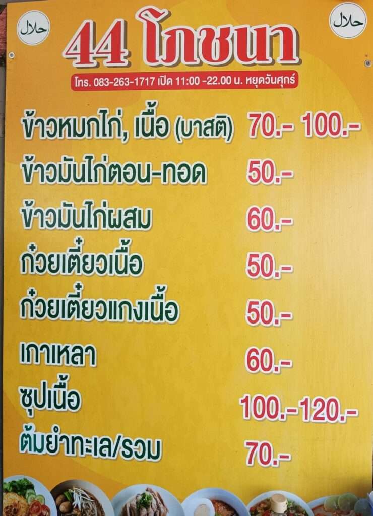 ทริปนี้ ลุงพาเพื่อนๆมาตามหาร้านอาหารมุสลิม ขนานแท้ ที่ตามหามานาน และมาตามคำบอกเล่า ของแฟนเพจ ที่ร้าน 44 โภชนา ร้านนี้ตั้งอยู่ที่ ปากซอยหทัยราษฎร์ 44 เป็นร้านอาหาร”มุสลิม”ขนาดกลาง ปรุงอาหารโดย บังหมัด ที่ได้ฉายา “ข้าวหมก ร็อคแอนด์โรล” จากศิลปินร็อคแนวหน้าของเมืองไทย เพราะเมื่อก่อน ลุงจัดงาน หารายได้ช่วยเหลือเพื่อนนักดนตรีที่ป่วย ฯลฯ ทุกครั้ง ลุงและทีมงานก็จะสั่งข้าวหมก ของบังหมัดไปเลี้ยงแขกที่มาร่วมงานทุกครั้ง ก่อนบังหมัด จะไปเปิดร้านอาหารมุสลิม ขายข้าวหมก ที่เป็นกิจลักษณะ เพื่อนำเสนอความอร่อย