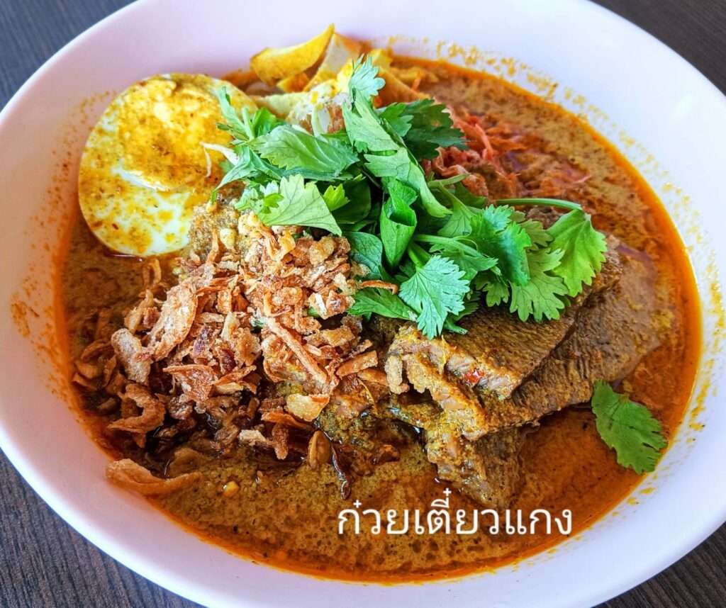 ลุงสั่งก๋วยเตี๋ยวแขก(แกงเนื้อ)มาเป็นเมนูแรก ก๋วยเตี๋ยวแขกราคา 50 บาท เส้นเล็กลวกมาเหนียวนุ่ม เนื้อเปื่อย เต้าหู้ ไข่ต้ม ราดน้ำแกงรสจัดจ้าน หอมเครื่องเทศ โรยด้วยหอมแดงเจียว น้ำแกงอร่อยมาก โดยเฉพาะส่วนผสมที่มี”เทียนข้าวเปลือก” ลักษณะคล้ายเมล็ดยี่หร่า แต่มีความหอม และหวานนวล รสกลมกล่อม อร่อยสมคำร่ำลือ…ต้องลองให้ได้ ห้ามพลาด