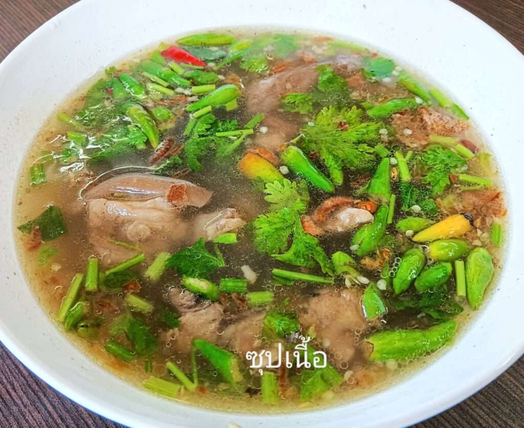 เมนูที่ 3 ซุปเนื้อ จานนี้ราคา 80 บาท ซุปสไตล์แบบเดียวกับซุปหางวัว เปรี้ยวเผ็ดเค็มรสจัดจ้าน เนื้อเปื่อยนุ่มเคี้ยวสบายฟัน อร่อยอีกหนึ่งรายการ