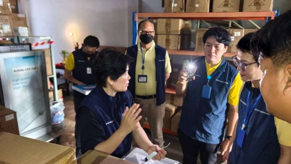 ด้าน น.ส.ฐิติภัสร์ กล่าวว่า ทีมชุดตรวจการสุดซอยได้เข้าตรวจร้านขายเครื่องใช้ไฟฟ้าของบริษัท นิว สตาร์ไลท์ เทค (ไทยแลนด์) จำกัด แขวงสวนหลวง เขตสวนหลวง กรุงเทพฯ โดยระบุชื่อนายต้า ชิ่ง วู๋ เป็นกรรมการ ซึ่งบริษัทฯ เคยถูกดำเนินคดีและจับกุมเมื่อปี 2564 ได้ถูกยึดอายัดของกลางกว่า 11 ล้านบาท และทางคณะกรรมการมาตรฐานผลิตภัณฑ์อุตสาหกรรม (กมอ.) ได้มีคำสั่งให้ทำลายของกลาง และเมื่อวันที่ 23 มกราคม 2568 ที่ผ่านมา สมอ. ได้เข้าดำเนินการตามคำสั่ง กมอ. ปรากฏว่าของกลางทั้งหมดหายไป เจ้าหน้าที่จึงได้ลงบันทึกประจำวันและดำเนินคดี พร้อมขยายผลต่อโดยตรวจพบสินค้าไม่มี มอก. ล็อตใหม่มูลค่ากว่า 26.3 ล้านบาท เช่น หลอดไฟแอลอีดี โคมไฟ หลอดไฟขั้วเกลียว แหล่งจ่ายไฟสำหรับคอมพิวเตอร์ อะแดปเตอร์ สายไฟ และป้ายไฟ เป็นต้น จึงได้ยึดอายัดและดำเนินคดีข้อหาจำหน่ายสินค้าไม่ได้มาตรฐานและนำของกลางมาเก็บรักษาไว้เพื่อไม่ให้มีการกระทำที่ฝ่าฝืนกฎหมายอีก
