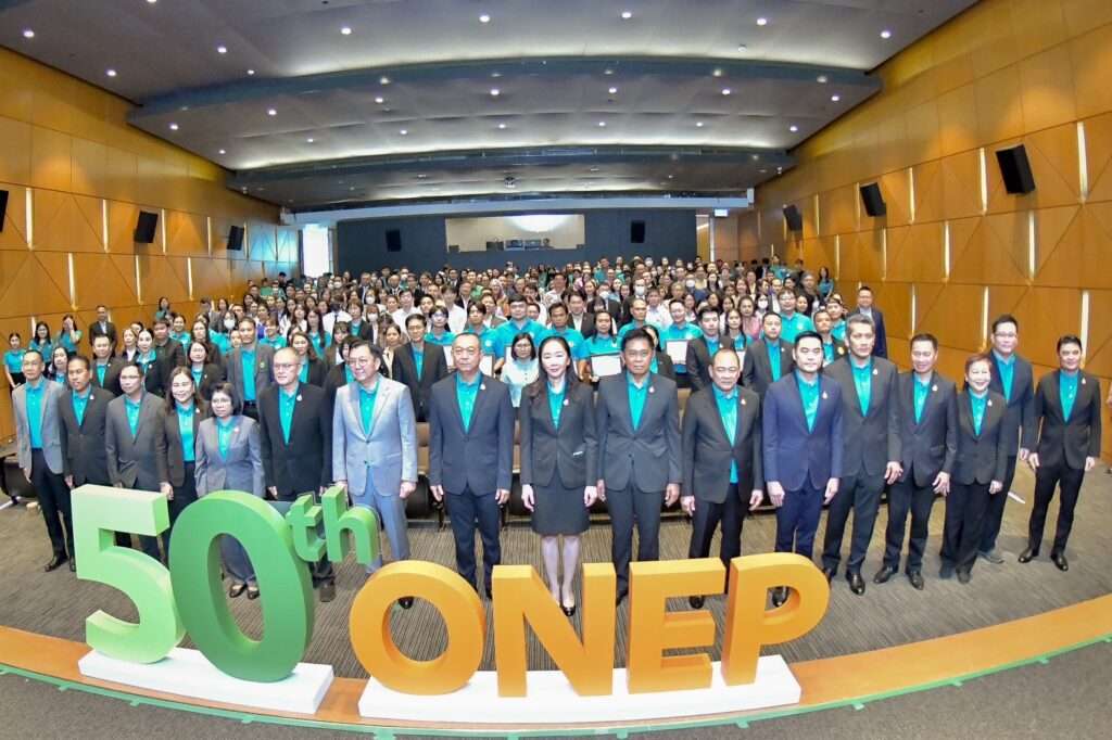 จากนั้น นายเฉลิมชัย ได้ร่วมเยี่ยมชมผลงาน “50 Years ONEP From Vision to Reality” ในรูปแบบ Art & Gallery ซึ่ง สผ. ถ่ายทอดเรื่องราวประวัติขององค์กรผ่านรูปภาพผลงานเชิงประจักษ์เพื่อเผยแพร่ผลงานและบทบาทหน้าที่ของ สผ. ต่อสาธารณชน เป็นการกระตุ้นให้เกิดความตระหนักถึงความสำคัญของทรัพยากรธรรมชาติและสิ่งแวดล้อม นอกจากนี้ ยังเป็นการเชื่อมโยงความร่วมมือระหว่างหน่วยงานต่าง ๆ เพื่อร่วมกันพัฒนานโยบายและโครงการสำคัญที่สอดคล้องกับแนวทางการพัฒนาประเทศที่ยั่งยืน โดยมีเป้าหมายสูงสุด คือ การสร้างสภาพแวดล้อมที่ดีมีคุณภาพ และเอื้อต่อการดำรงชีวิตของประชาชนทุกคน และยังเป็นการแสดงถึงความมุ่งมั่นในการสร้างความเปลี่ยนแปลงเชิงบวก เปิดโอกาสให้ทุกภาคส่วนร่วมกันสร้างอนาคตที่ดีต่อประเทศชาติต่อไป โดยมีผู้เข้าร่วมจากหน่วยงานภาครัฐ ภาคเอกชน และเครือข่ายความร่วมมือ ประมาณ 300 คน