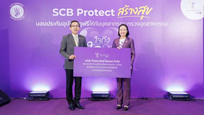 บริษัท ไทยพาณิชย์ โพรเทค จำกัด ร่วมมือกับกระทรวงอุตสาหกรรม เปิดตัวโครงการ “SCB Protect สร้างสุข แจกประกันอุบัติเหตุฟรี 90 วัน”เพื่อมอบความคุ้มครองให้แก่บุคลากรของกระทรวงอุตสาหกรรมทั่วประเทศ โดยมี นายศุภกิจ บุญศิริ รองปลัดกระทรวงอุตสาหกรรม ให้เกียรติเป็นประธานเปิดงาน พร้อมด้วย นางสาวปรมาศิริ มโนลม้าย ประธานเจ้าหน้าที่บริหาร บริษัท ไทยพาณิชย์ โพรเทค จำกัด ร่วมส่งมอบกรมธรรม์แก่เจ้าหน้าที่กระทรวงอุตสาหกรรมในพิธี