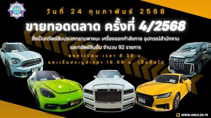 ปปง. ขายทอดตลาดทรัพย์สินประเภท ยานพาหนะ เครื่องออกกำลังกาย อุปกรณ์สำนักงาน และทรัพย์อื่น ในวันที่ 24 ก.พ.68 นี้
