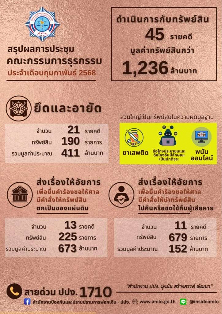 ครั้งที่ 2/2568 เมื่อวันที่ 13 ก.พ.68 ซึ่งได้ดำเนินการกับทรัพย์สินกว่า 1,000 รายการ 45 รายคดี