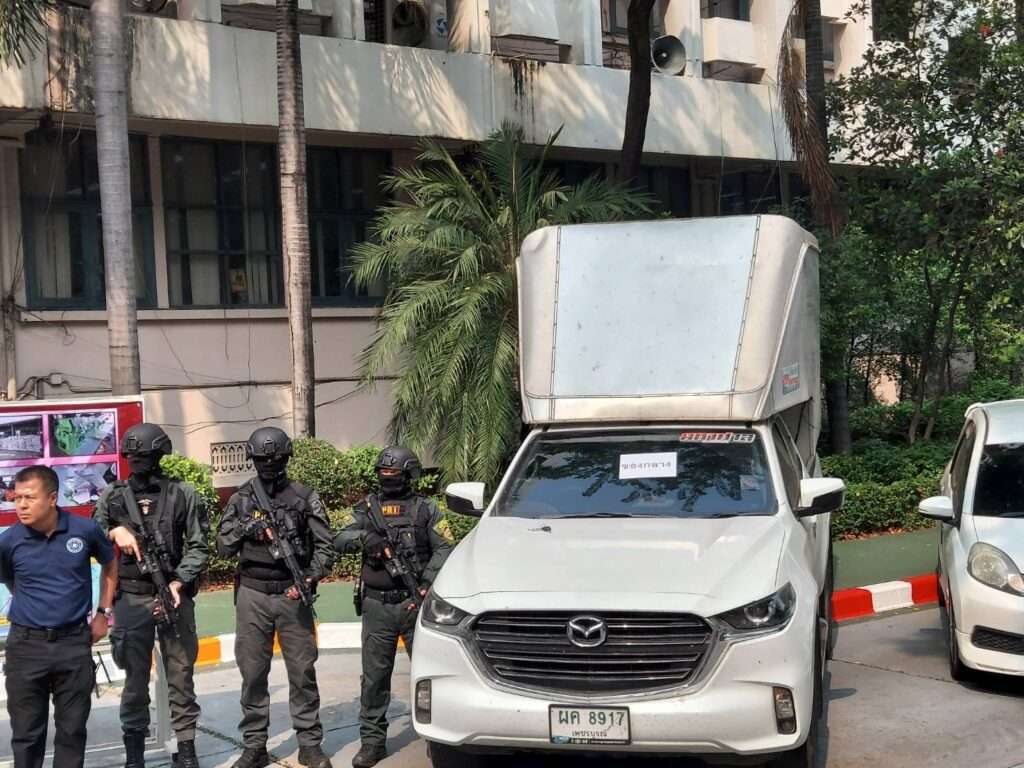 ต่อมาในวันเดียวกัน เวลาประมาณ 07.00 น. เจ้าหน้าที่ตำรวจ ทำการสกัดจับรถยนต์ตู้ทึบ 2 คัน พร้อมรถติดตามอีก 1 คัน ตามข้อมูลที่ได้รับแจ้ง จากการตรวจค้นรถทั้ง 3 คัน พบมีวัตถุเป็นหีบห่อมีสิ่งของบรรจุไว้ ลักษณะคล้ายยาเสพติด อยู่ในรถยนต์ตู้ทึบทั้ง 2 คัน เมื่อแกะออกมาพบวัตถุเกร็ดใสคล้ายยาเสพติด (ไอซ์) ซึ่งจากการตรวจสอบด้วยน้ำยาเคมีพบว่าเป็น ไอซ์ น้ำหนักประมาณ 2,464 กิโลกรัม พร้อมจับกุมนายพิษณุ (ขอสงวนนามสกุล) อายุ 26 ปี สัญชาติ ไทย ภูมิลำเนาอยู่ที่ จ.บุรีรัมย์ นายสุวิทย์ (ๆสงานนามสกุล) อายุ 33 ปี สัญชาติ ไทย ภูมิลำเนาอยู่ที่ จ.บุรีรัมย์ ,ๆๅนายหล้า (สงานนามสกุล) อายุ 41 ปี สัญชาติ เมียนมาร์ พร้อมของกลาง รถยนต์กระบะ ตู้ทึบ ยี่ห้ออีซูซุ สีขาว ทะเบียน 1 ฒศ 6772 กรุงเทพฯ,รถยนต์กระบะ ตู้ทึบ ยี่ห้อ โตโยต้า สีขาว ทะเบียน 1ฒว 7280 กรุงเทพฯ,รถยนต์เก๋ง ยี่ห้อ โตโยต้า สี บรอนซ์ เงิน ทะเบียน ฌต 7915 กรุงเทพฯ และยาเสพติดให้โทษประเภท 1 (เมทแอมเฟตามีนไฮโดรคลอไรด์หรือไอซ์) น้ำหนักประมาณ 2,464 กก.