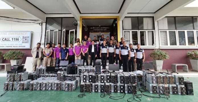วันที่ 27 พฤศจิกายน 2567 เจ้าหน้าที่ตำรวจกองกำกับการ 5 กองบังคับการปราบปราม ได้สืบสวนพบโรงงานไม้แปรรูปแห่งหนึ่งในพื้นที่อำเภอท่าชนะ จังหวัดสุราษฎร์ธานี มีการลักกระแสไฟฟ้าเพื่อใช้สำหรับ เครื่องขุดเงินสกุลดิจิตัล จึงร่วมกับเจ้าหน้าที่การไฟฟ้าส่วนภูมิภาค เข้าตรวจค้นโรงงานดังกล่าว ผลการตรวจค้นพบเครื่องขุดเงินสกุลดิจิตัลติดตั้งอยู่ภายในโรงงานฯ กว่า 97 เครื่อง เมื่อเจ้าหน้าที่การไฟฟ้าส่วนภูมิภาคตรวจสอบมิเตอร์ไฟฟ้าของโรงงานพบมีร่องรอยแก้ไขดัดแปลง เพื่อลักกระแสไฟฟ้า จึงได้ตรวจยึดของกลาง ส่งพนักงานสอบสวนกองกำกับการ 5 กองบังคับการปราบปราม ดำเนินคดีตามกฎหมายต่อไป