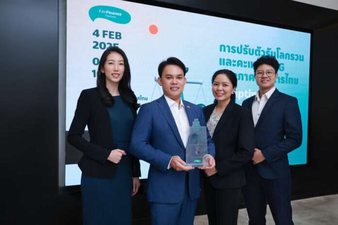ทีเอ็มบีธนชาต หรือ ทีทีบี เดินหน้าประกาศความสำเร็จบนเส้นทางสู่ “การธนาคารเพื่อความยั่งยืน” ครองอันดับหนึ่งธนาคารที่มีคะแนนด้าน ESG สูงสุดต่อเนื่องเป็นปีที่ 6 ด้วยคะแนนที่เพิ่มขึ้น 9.59% ในการประเมินนโยบายด้าน ESG ของภาคธนาคารไทย จากการประเมินโดยคณะวิจัยแนวร่วมการเงินที่เป็นธรรมประเทศไทย (Fair Finance Thailand) ประจำปี 2567 ได้คะแนนโดดเด่นในหมวดต่าง ๆ ที่ได้ดำเนินการปฏิบัติเป็นปีแรก หรือการยกระดับมาตรฐานการดำเนินงานด้วยการรับหลักการและมาตรฐานสากลที่ส่งผลต่อการประเมินจนได้รับคะแนนสูงขึ้น คือ หมวดการเปลี่ยนแปลงสภาพภูมิอากาศ หมวดสิทธิแรงงาน และหมวดการคุ้มครองผู้บริโภค โดยมีนายกมลพันธ์ ลักษณา หัวหน้าการพัฒนาที่ยั่งยืน ทีเอ็มบีธนชาต เป็นตัวแทนรับรางวัลจากนางสาวสฤณี อาชวานันทกุล หัวหน้าคณะวิจัย แนวร่วมการเงินที่เป็นธรรมประเทศไทย ณ ศูนย์การเรียนรู้ธนาคารแห่งประเทศไทย (Bank of Thailand Learning Center)