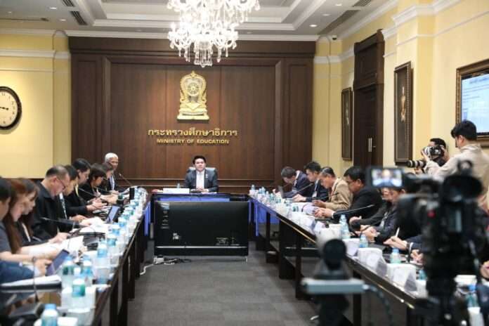 ที่กระทรวงศึกษาธิการ วันที่ 4 มีนาคม นายสุรศักดิ์ พันธ์เจริญวรกุล รัฐมนตรีช่วยว่าการกระทรวงศึกษาธิการ (ศธ.) เป็นประธานการประชุมคณะกรรมการขับเคลื่อนนโยบายการแก้ไขปัญหาหนี้สินครูและบุคลากรทางการศึกษาของกระทรวงศึกษาธิการ ครั้งที่ 1/2568 โดยมี นายสุเทพ แก่งสันเที๊ยะ ปลัดกระทรวง นายยศพล เวณุโกเศศ เลขาธิการคณะกรรมการการอาชีวศึกษา นางเกศทิพย์ ศุภวานิช รองเลขาธิการคณะกรรมการการศึกษาขั้นพื้นฐาน นายพีระพันธ์ เหมะรัต เลขาธิการคณะกรรมการ สกสค. ผู้แทนจากสถาบันทางการเงิน ธนาคาร และคณะกรรมการจากภาคส่วนต่างๆ ที่เกี่ยวข้อง เข้าร่วมการประชุม
