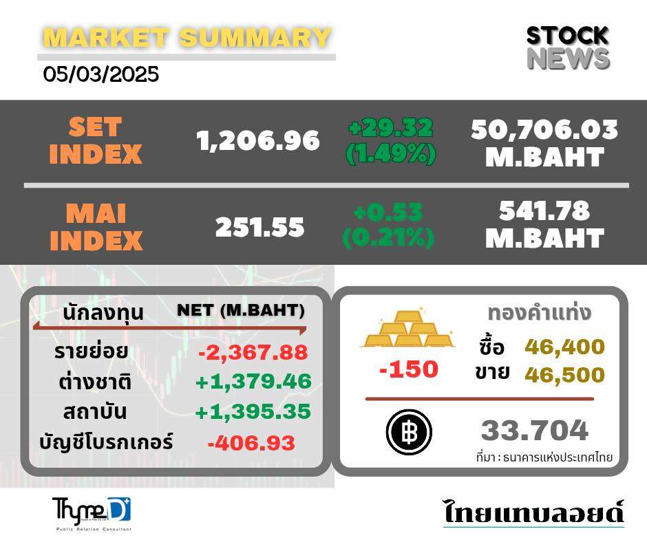 สรุปภาวะการลงทุนในตลาดหลักทรัพย์ ประจำวันที่ 05 มีนาคม 2568