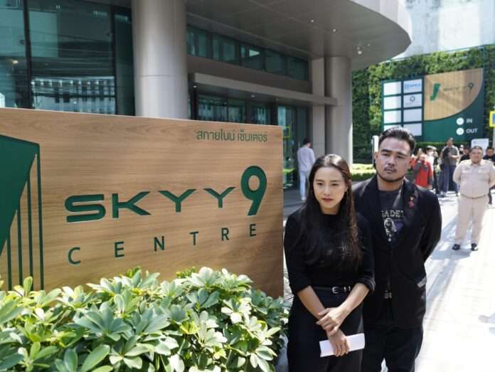 ที่หน้าอาคาร SKYY9 Centre ย่านพระราม 9 วันที่ 10 มีนาคม รักชนก ศรีนอก สส.กรุงเทพฯ พรรคประชาชน และ สหัสวัต คุ้มคง สส.ชลบุรี พรรคประชาชน ร่วมแถลงข่าว “แฉเสียดฟ้า กองทุนประกันสังคมจงใจลงทุนผิดพลาด เพื่อเอื้อผลประโยชน์พวกพ้องหรือไม่” กรณีสำนักงานประกันสังคม (สปส.) ซื้ออสังหาริมทรัพย์ย่านพระราม 9 ที่มีข้อสงสัยถึงปัญหาธรรมาภิบาล โดยรักชนกระบุว่า การลงทุนของคือหัวใจสำคัญของกองทุนประกันสังคม เพราะการที่กองทุนจะอยู่ได้หรือจะล้มอยู่ที่การนำเงิน 2.6 ล้านล้านบาทในกองทุนไปบริหารจัดการอย่างไร ซึ่งกรณีวันนี้เป็นแค่ส่วนหนึ่งที่ทำให้เห็นถึงปัญหาธรรมาภิบาลในการลงทุนของ สปส. ที่เล่นแร่แปรธาตุซื้อตึกมูลค่า 3 พันล้านบาทด้วยราคา 7 พันล้านบาทในปี 2565-2566 ซึ่งไม่ใช่ตึกที่เพิ่งสร้างเสร็จ แต่เป็นตึกที่ในอดีตช่วงวิกฤตเศรษฐกิจต้มยำกุ้งเป็นตึกร้าง จนกระทั่งมีบริษัทแห่งหนึ่งซื้อตึกไปปรับปรุงซ่อมแซม เมื่อปรับปรุงเสร็จก็ประจวบเหมาะกับช่วงที่ สปส. ปรับแก้ระเบียบต่างๆ ทำการศึกษา และมีการตัดสินใจลงทุนพอดี