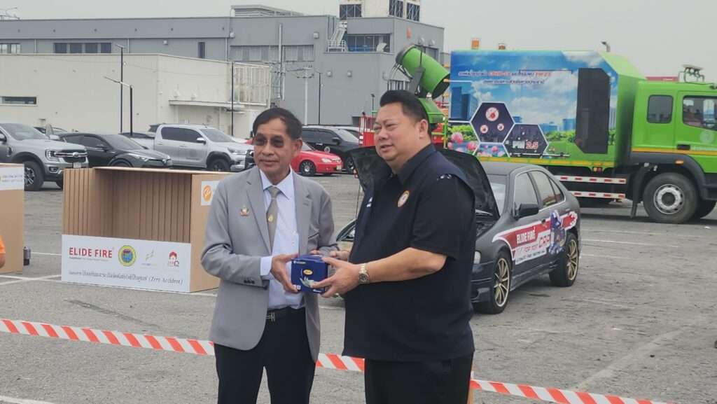 สำหรับการจัดงานทดสอบประสิทธิภาพลูกบอลดับเพลิงอัตโนมัติ ELIDE FIRE automatic Fire extinguishing ball และชมการทดสอบประสิทธิภาพลูกบอลดับเพลิงอัตโนมัติ ทดสอบประสิทธิภาพการดับเพลิงอัตโนมัติและระงับเพลิง ซึ่งจะโยนลูกบอลดับเพลิงอัตโนมัติเข้าฐานเพลิงทดสอบประสิทธิภาพการดับเพลิงอัตโนมัติ ซึ่งจะแบ่งตามระดับความรุนแรงของเพลงที่ไหม้ ประเภท B คือเพลิงที่ไหมจากของเหลวที่ติดไฟ หรือ ก๊าซที่ติดไฟ แบ่งความรุนแรงออก เป็น 3 level ในแต่ละฐานการทดสอบ นอกจากนี้ยังทดสอบกับเพลิงที่เกิดจากไฟฟ้าลัดวงจร โดยการติดตั้งลูกบอลดับเพลิงไว้ที่ตู้ไฟฟ้าและห้องเครื่องรถยนต์ ทดสอบประสิทธิภาพการดับเพลิงอัตโนมัติร่วมกับโดรนอากาศยานไร้คนขับบรรจุลูกบอลดับเพลิง 2 ลูก กับการดับไฟประเภท B ความรุนแรงระดับ 3 เมื่อเห็นควันไฟโดรนจะปล่อยลูกบอลดับเพลิงลงฐานเพลิงเพื่อดับเพลิงขั้นต้นก่อนลุกลามเป็นไฟใหญ่ ซึ่งผล การทดสอบ มีประสิทธิภาพมาก