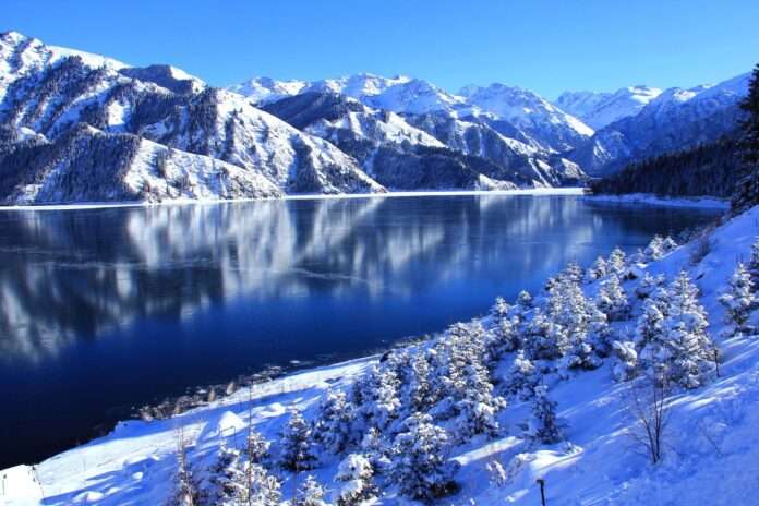 ฤดูหนาวในซินเจียงปกคลุมไปด้วยหิมะขาว ราวกับโลกแห่งนิทาน ทุ่งหิมะในคานาส เทือกเขาอัลไต สวยราวกับภาพวาด หมู่บ้านเหอมู่ เงียบสงบและงดงามดั่งความฝันเหมาะสำหรับเล่นสกีและชมหมอกน้ำแข็ง ทะเลสาบสวรรค์ ภูเขาเทียนซาน ดูลึกลับและน่าทึ่งเมื่อสะท้อนกับหิมะ ฟาร์มทุ่งหญ้าภูเขาทางใต้สามารถสัมผัสประสบการณ์นั่งม้าลากเลื่อนหรือสัมผัสกับวัฒนธรรมพื้นบ้านของ ชาวคาซัค ถนนทางหลวงตู๋คู่ในฤดูหนาวมีทิวทัศน์ที่กว้างใหญ่สวยงาม อีกทั้งยังมีอาหารที่อร่อยเช่นชาบูเนื้อแกะและชานม ช่วยให้ร่างกายและจิตใจอบอุ่น การเดินทางในฤดูหนาวของซินเจียง ทำให้ผู้คนไม่อยากกลับบ้าน