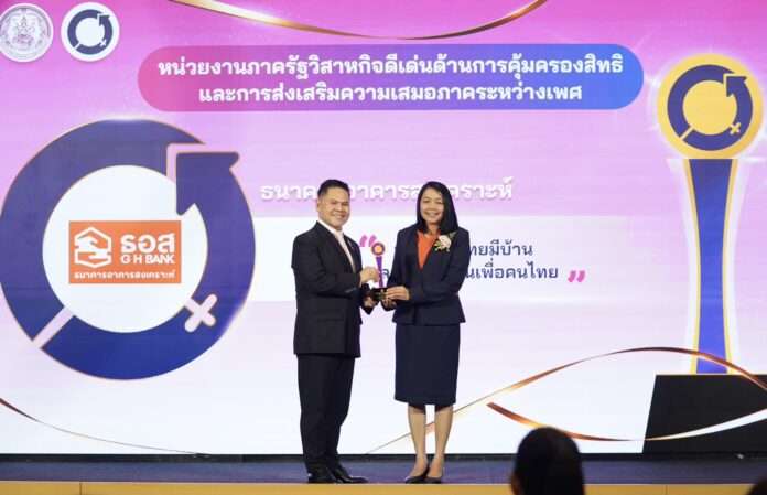 ธนาคารอาคารสงเคราะห์ (ธอส.) รับรางวัลเกียรติคุณ “องค์กรดีเด่น ด้านการคุ้มครองสิทธิและการส่งเสริมความเสมอภาคระหว่างเพศ ประเภทหน่วยงานรัฐวิสาหกิจ”ในงานวันสตรีสากล ประจำปี 2568 จัดโดยคณะกรรมการดำเนินงานวันสตรีสากล กระทรวงการพัฒนาสังคมและความมั่นคงของมนุษย์ และได้รับเกียรติจากนายวราวุธ ศิลปอาชา รัฐมนตรีว่าการกระทรวงการพัฒนาสังคมและความมั่นคงของมนุษย์ เป็นประธานในพิธีมอบรางวัลประกาศเกียรติคุณ ซึ่ง ธอส. เป็นองค์กรที่ดำเนินงานด้วยความเคารพต่อหลักสิทธิมนุษยชน ให้ความสำคัญในการส่งเสริมความเสมอภาคระหว่างเพศ และใช้ความเชี่ยวชาญขององค์กรในการให้ความรู้ทางการเงิน การดำเนินกิจกรรมที่มุ่งเน้นการพัฒนาคุณภาพชีวิตและความปลอดภัยของสตรีในสังคมไทย โดยเฉพาะกลุ่มเปราะบาง อาทิ การคุ้มครองสิทธิสตรีในกระบวนการจัดสรร