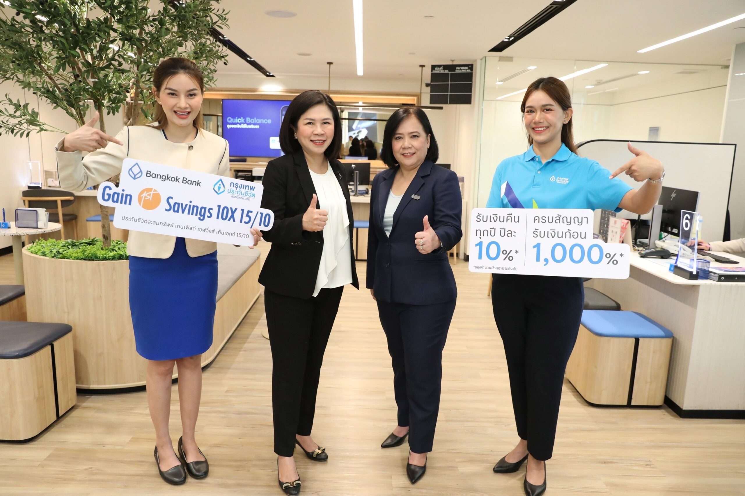 ธนาคารกรุงเทพ จับเทรนด์ตลาดผันผวน-ดอกเบี้ยต่ำ ลูกค้ามองหาช่องทางออมระยะยาว ลดความเสี่ยง ให้ผลตอบแทนสม่ำเสมอ จับมือ กรุงเทพประกันชีวิต ออกประกันออมทรัพย์แบบใหม่ “เกนเฟิสต์ เซฟวิ่งส์ เท็นเอกซ์ 15/10” จับตลาดกลุ่มลูกค้ามุ่งสร้างความมั่นคงแผนการเงิน จ่ายเบี้ยเพียง 10 ปี คุ้มครองถึง 15 ปี รับผลประโยชน์คืนปีละ 10% ของทุนประกัน คืนเงินก้อนใหญ่ 10X เมื่อครบสัญญา ครอบคลุมความคุ้มครองชีวิตสูงสุด 2,100% ช่วยสร้างแผนการเงินระยะยาวอย่างมั่นใจ หาซื้อได้ที่ธนาคารกรุงเทพเท่านั้น พร้อมเป็น “เพื่อนคู่คิด” ที่เข้าใจและเคียงข้างลูกค้าในทุกแผนการเงินเพื่ออนาคต
