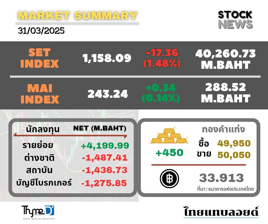 สรุปภาวะการลงทุนในตลาดหลักทรัพย์ ประจำวันที่ 31 มีนาคม 2568