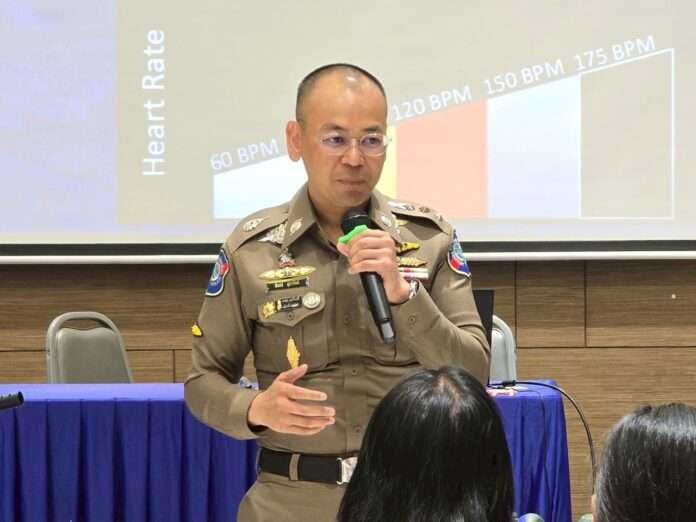 เมื่อวันที่ 1 เม.ย. ที่คณะครุศาสตร์ จุฬาลงกรณ์มหาวิทยาลัย พล.ต.ท.ศักย์ศิรา เผือกอ่ำ ผบช.ทท. มอบหมายให้ พ.ต.อ.ปิยรัช สุภารัตน์ รอง ผบก.ทท 1 พ.ต.ท.กฤตพร แสงสุระ สว.กก.สืบสวน บช.ทท. ส.ต.อ.ธัญชนิต ริตุ ผบ.หมู่ งานสายตรวจ 1 และคณะ ร่วมกับกก.สายตรวจ บก.สปพ., สน.ปทุมวัน จัดอบรมให้ความรู้เพื่อเตรียมความพร้อมเผชิญเหตุกรณีคนร้ายกราดยิง (Active Shooter) แก่คณะครูอาสาสมัครที่ผ่านการคัดเลือกเข้าโครงการสอนภาษาไทยและวัฒนธรรมไทยให้กับเด็กไทยในต่างประเทศ โดยศูนย์ส่งเสริมการสอนภาษาไทยและวัฒนธรรมไทยฯ คณะครุศาสตร์ จุฬาลงกรณ์มหาวิทยาลัย จำนวน 63 คน