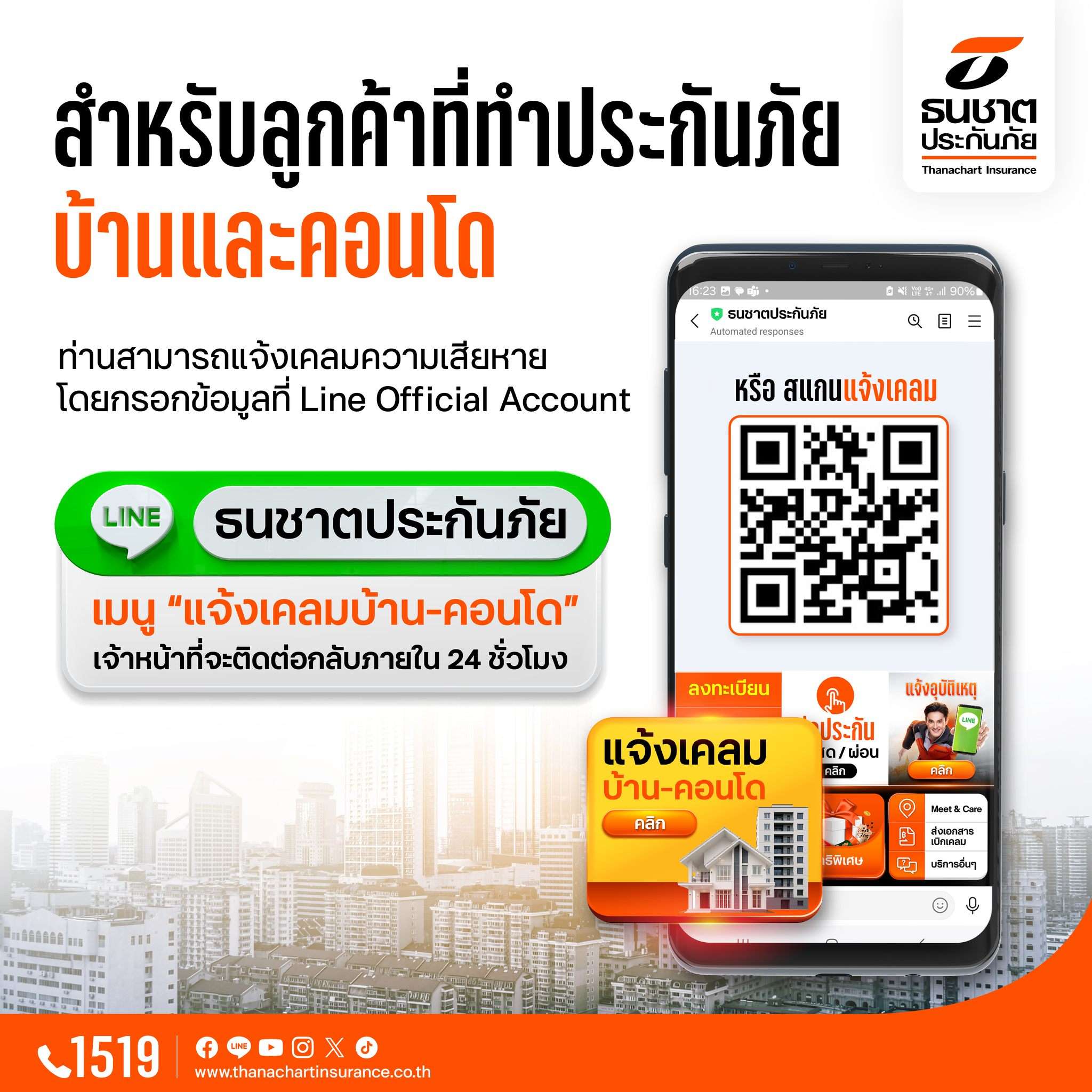 ธนชาตประกันภัย ห่วงใยลูกค้าที่ได้รับผลกระทบจากเหตุแผ่นดินไหว เปิดช่องทางบริการด่วนให้แจ้งเคลมความเสียหายของบ้านและคอนโดมิเนียม ผ่าน LINE Official Account “ธนชาตประกันภัย” เมนู “แจ้งเคลมบ้าน-คอนโด” พร้อมจัดเจ้าหน้าที่ให้บริการรับแจ้งเหตุและให้คำปรึกษาตลอด 24 ชั่วโมง เพื่อดูแลลูกค้าอย่างใกล้ชิด