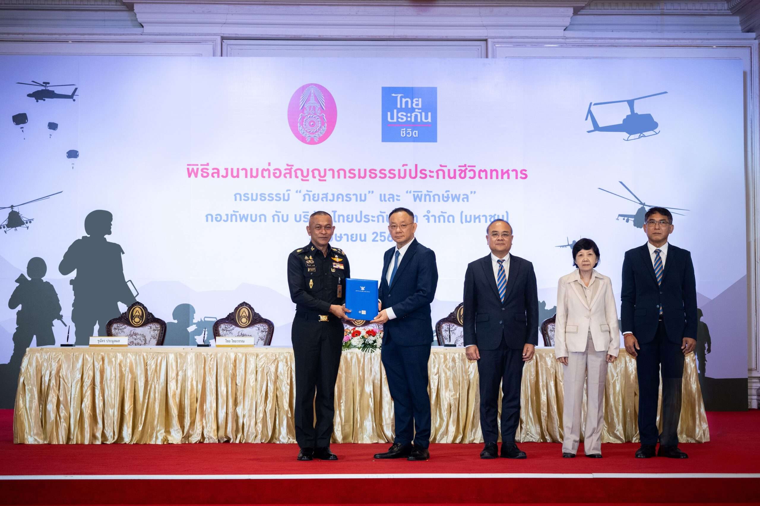 พลเอก ชิษณุพงศ์ รอดศิริ ผู้ช่วยผู้บัญชาการทหารบก พร้อมด้วย นายไชย ไชยวรรณ กรรมการและประธานเจ้าหน้าที่บริหาร และนางศรีสุดา พูลพิพัฒนันท์ กรรมการ บริษัท ไทยประกันชีวิต จํากัด(มหาชน) ร่วมลงนามต่อสัญญากรมธรรม์ประกันชีวิตทหาร ประจําปี 2568 เพื่อมอบหลักประกันและความคุ้มครองแก่กําลังพลกองทัพบกทุกชั้นยศ ภายใต้กรมธรรม์แบบ “ภัยสงคราม” และแบบ ”พิทักษ์พล” ซึ่งคุ้มครองทั้งกรณีปฏิบัติภารกิจภาคสนามและยามปกติ โดยได้รับเกียรติจาก นายชูฉัตร ประมูลผล เลขาธิการ และนายอาภากร ปานเลิศ รองเลขาธิการ ด้านกํากับธุรกิจประกันภัย สํานักงานคณะกรรมการกํากับและส่งเสริมการประกอบธุรกิจประกันภัย (คปภ.) ร่วมเป็นสักขีพยาน ณ กองบัญชาการกองทัพบก